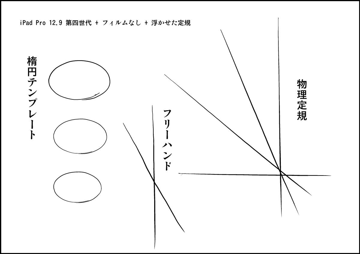 iPad Pro + Apple Pencil 2でも定規を浮かせて、ペン先に定規が触れない状態では、ゆっくり線を引いてもそれほど線が波打ちません。