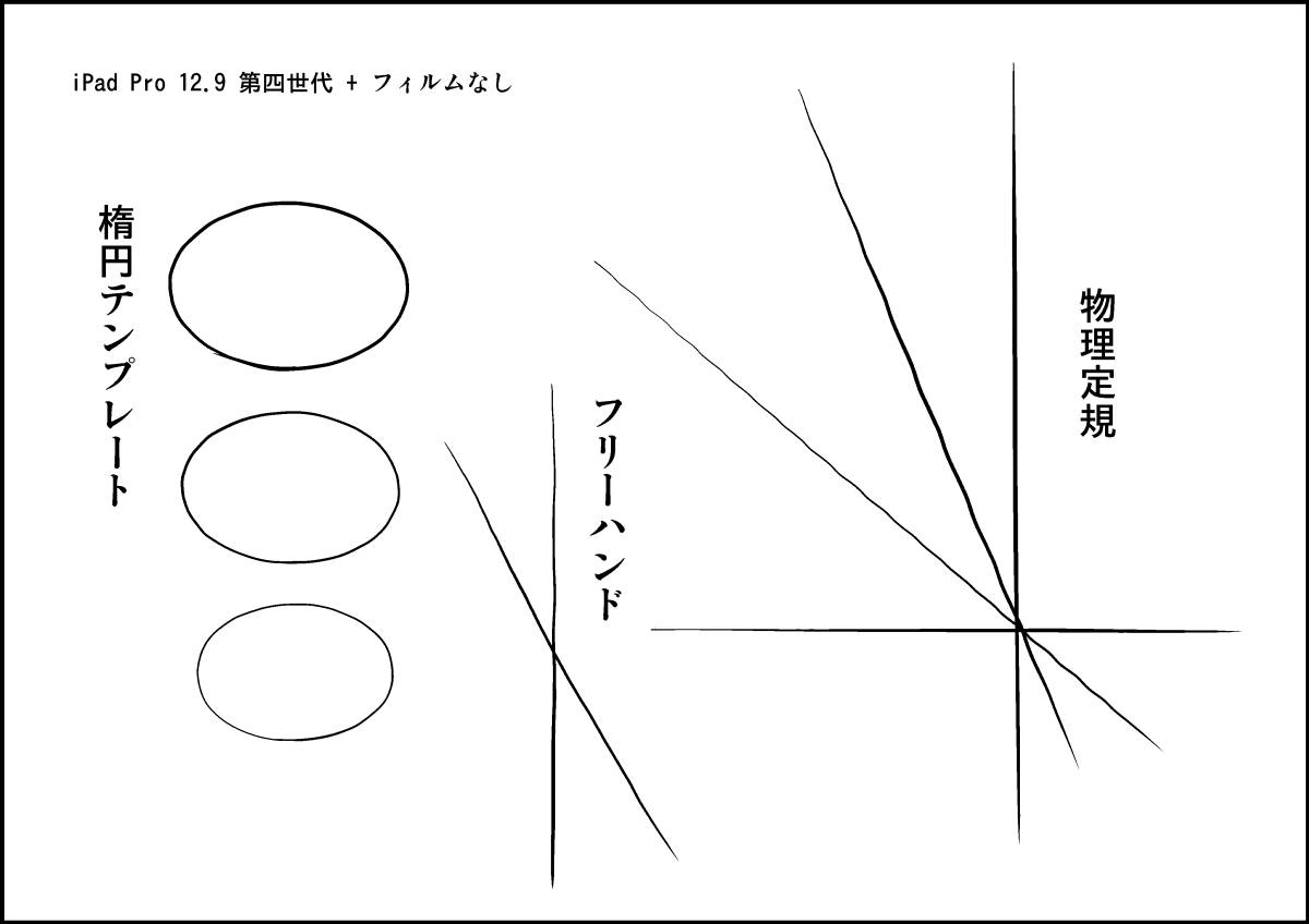 iPad Pro 12.9 第四世代 + Apple Pencil 2 で物理定規を使ってゆっくり斜めに線を引くと線が波打つ