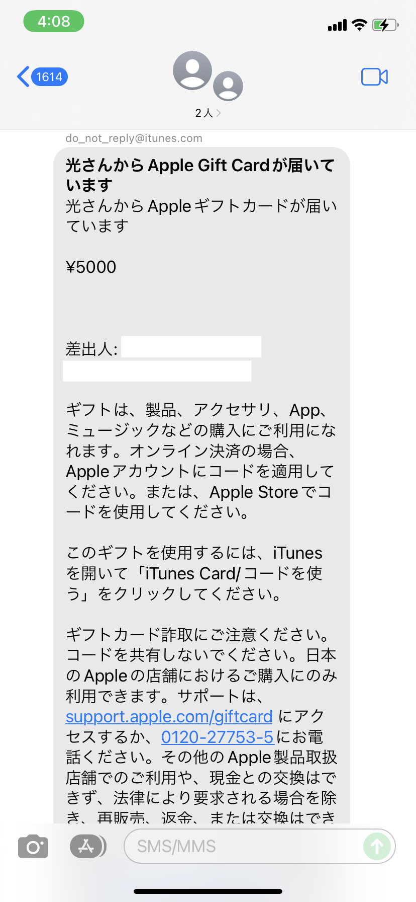 Apple ギフトカードの贈り主である「光さん」は、杉浦光さんと同一人物、つまり ご自分宛に Apple ギフトカードを贈られた と言う事で宜しいでしょうか?