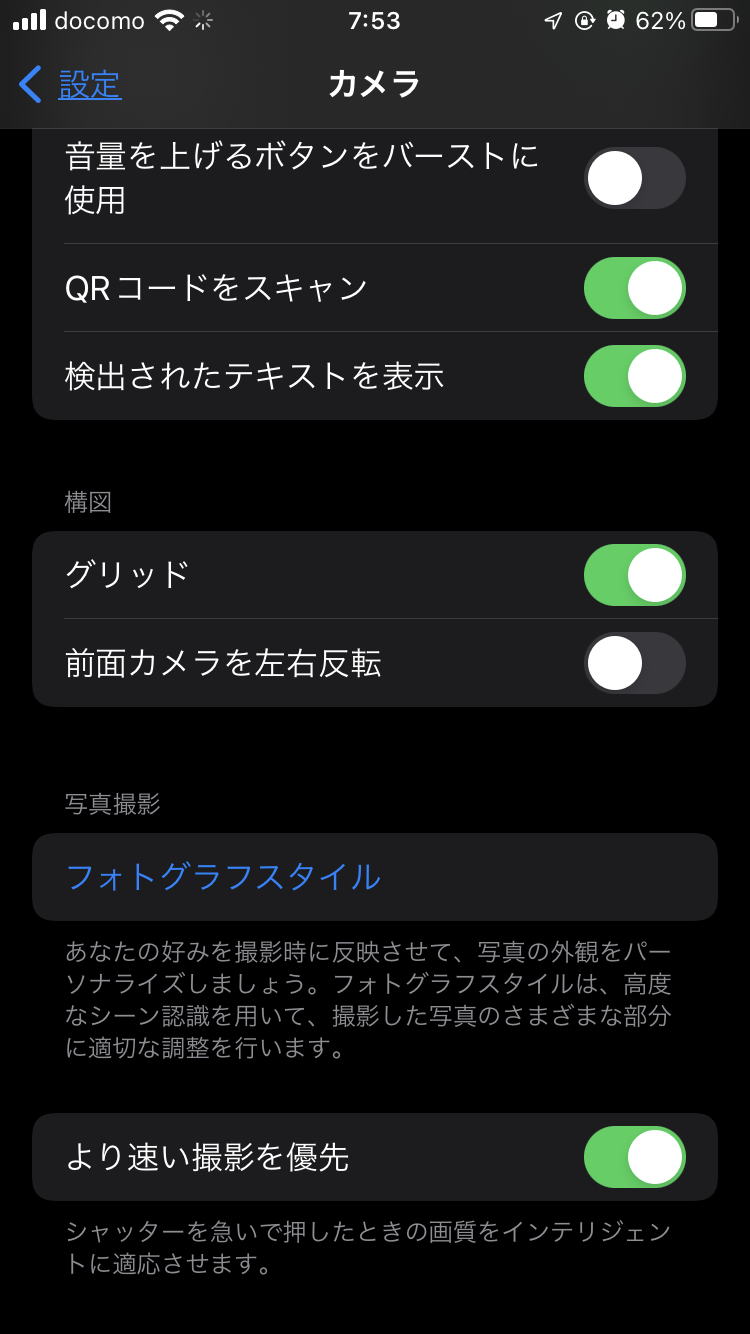 ブック(Apple books)アプリでiPhoneユーザガイド(io15.4)を入手し、カメラの項目を確認してみてはどうでしょうか?(説明の記載があればいいですね。)