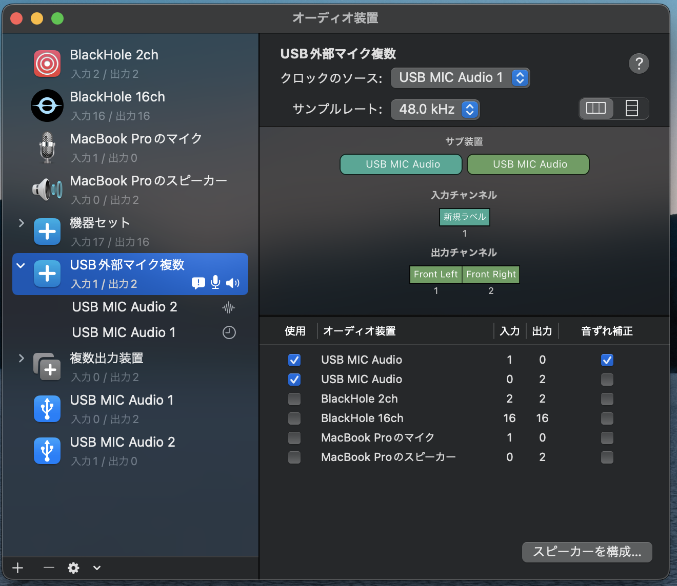 2つつなげた状態でAudioMIDI設定を見てみると、