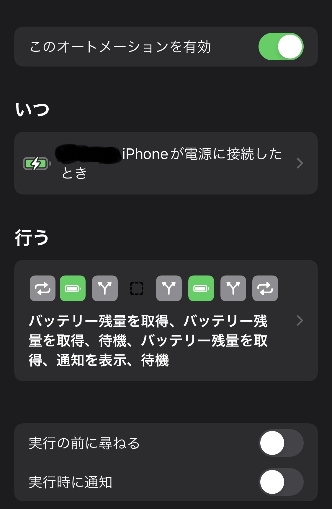 iPhone 充電完了通知のオートメーションがうまく作動しません