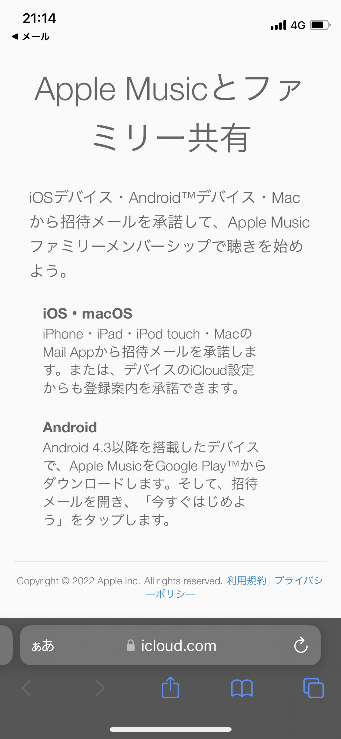 ファミリー共有してもらい、メールくるけど承認できない。バナー押すと、ウェブサイトにとびそこから先に進めない。