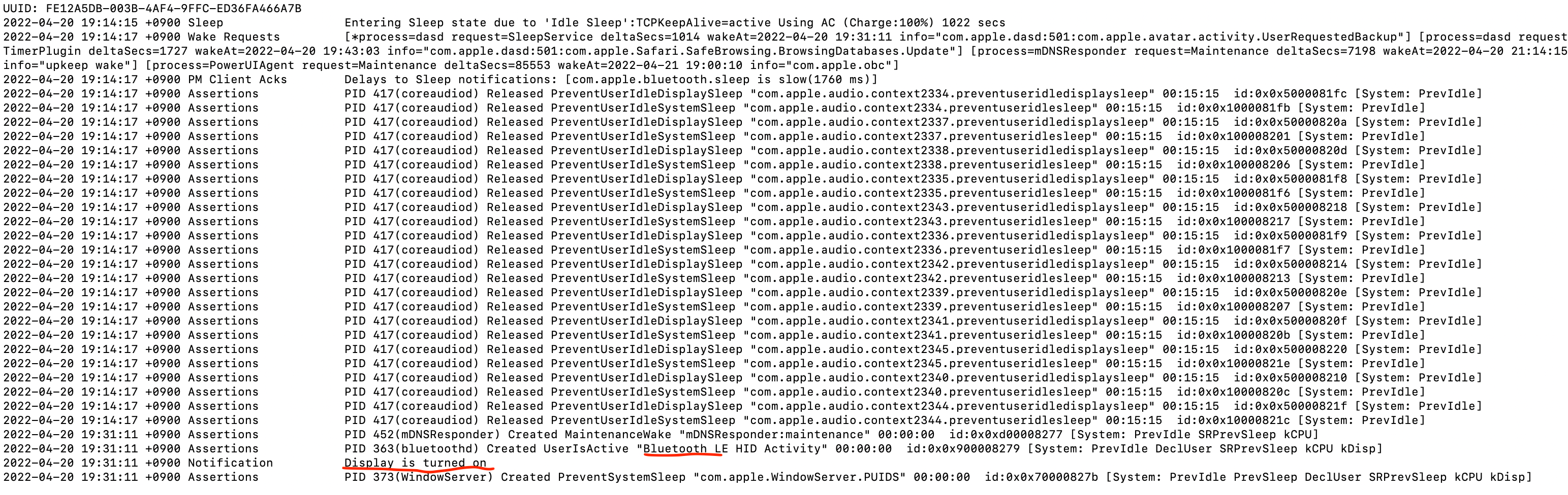 ちなみに外部ディスプレイ、外付けHDDなど何も付けていない状態でもスリープが勝手に復帰してしまいます。