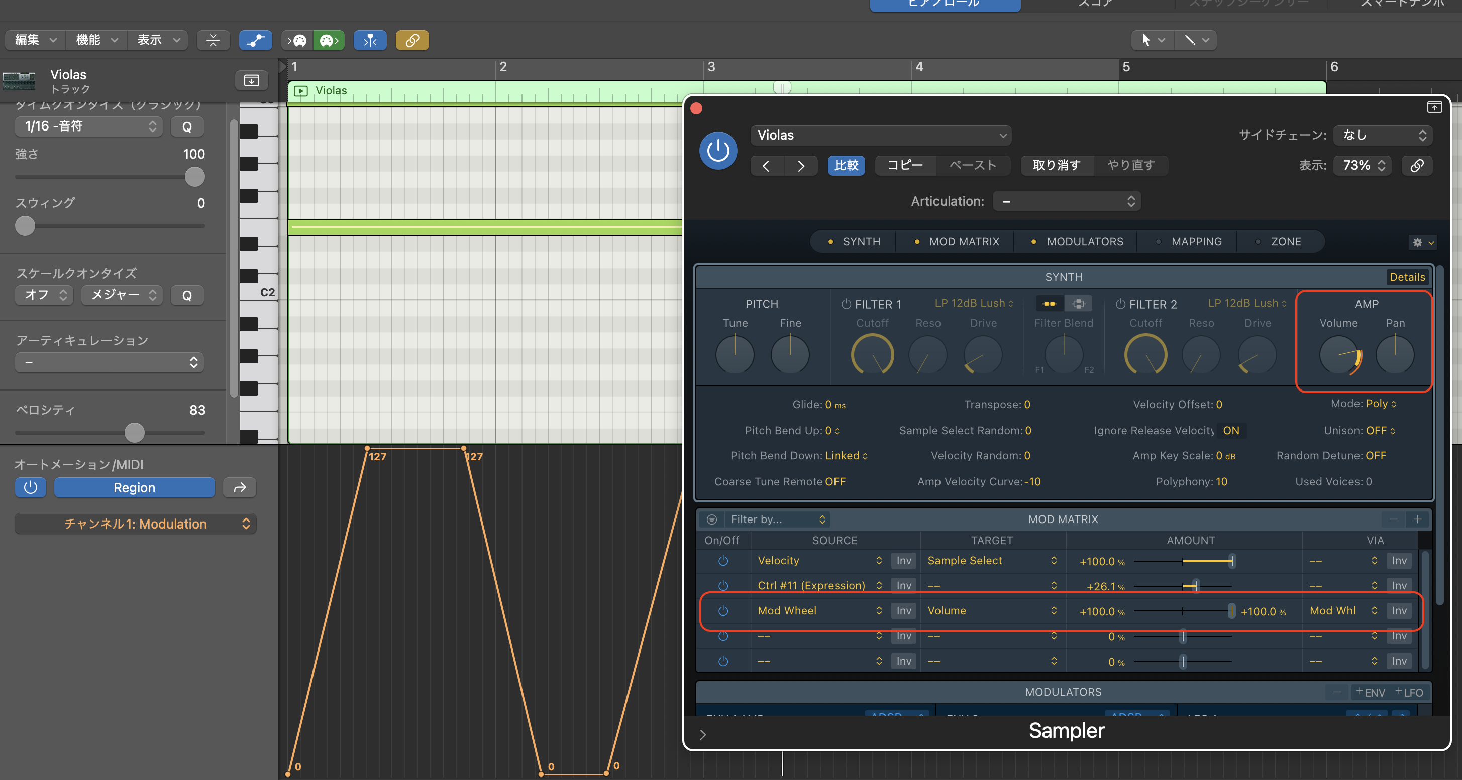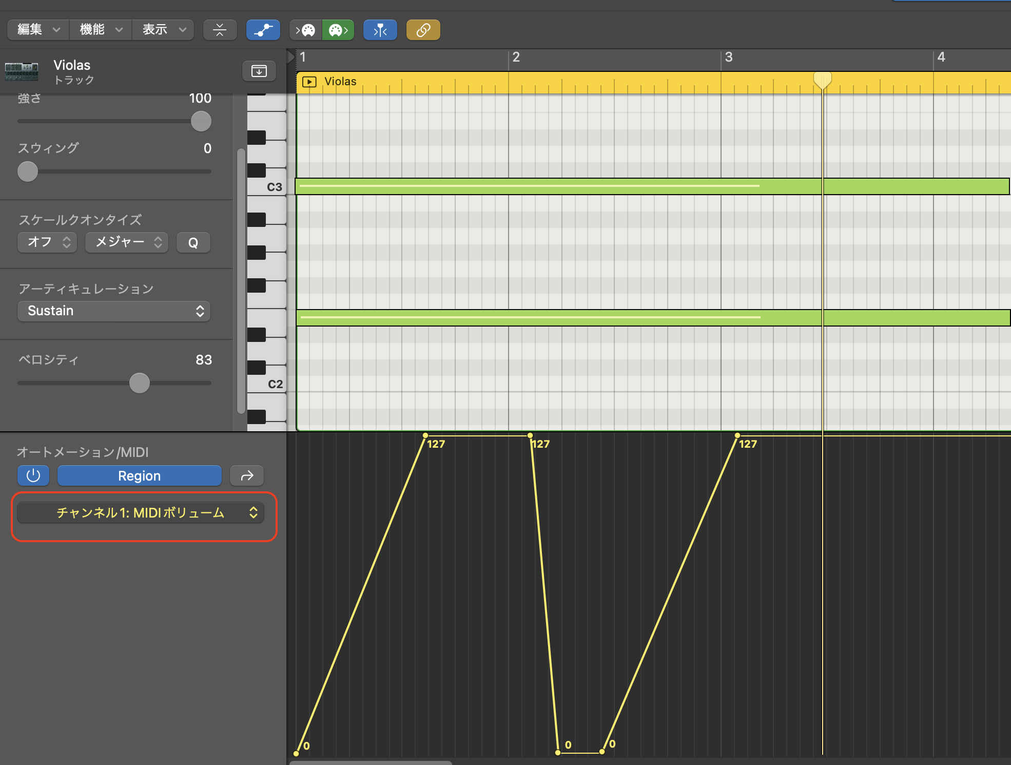 ちなみにここでTARGETをPitchにしたら音量変化でなく音高変化になるので面白いことが起こるでしょう。