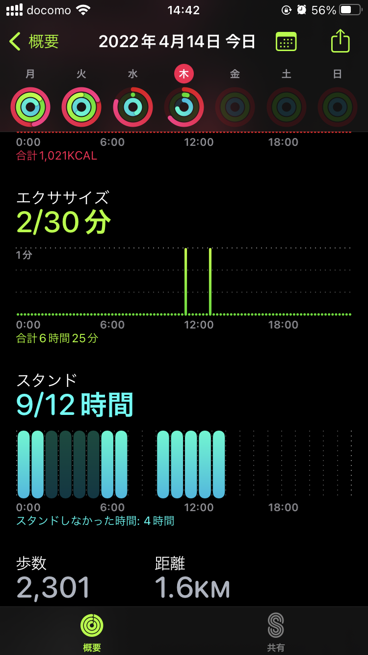 1回目は1.38キロを約8分、2回目は1.58キロを約13分で平均脈拍数はどちらも120/分なので、エクササイズとしてカウントされる条件は満たしているはず。