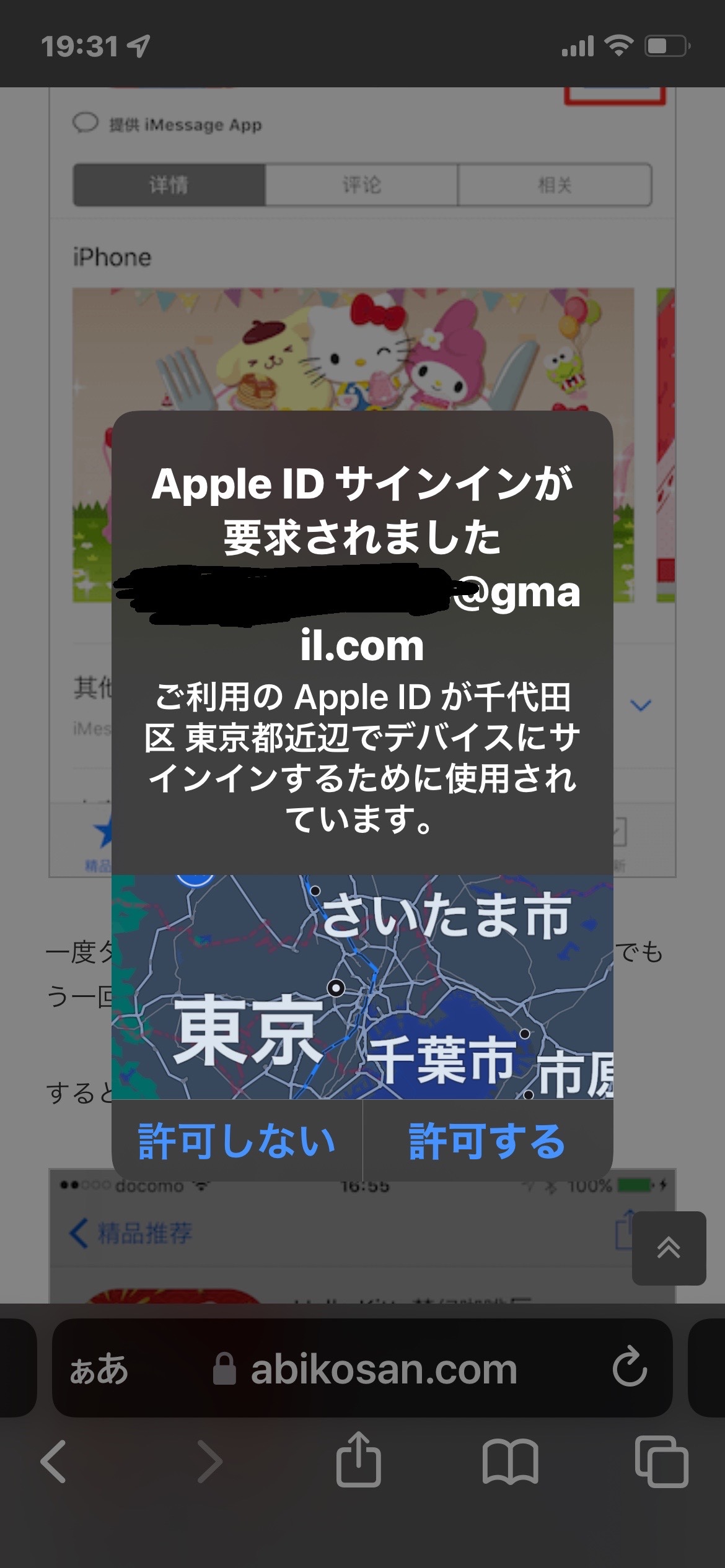 しかし。iPhoneには、この画面が出て、許可すると承認コードが表示されます。しかし、iPadではID・パスワードが違うと判断されるので、承認コードが入力できません。