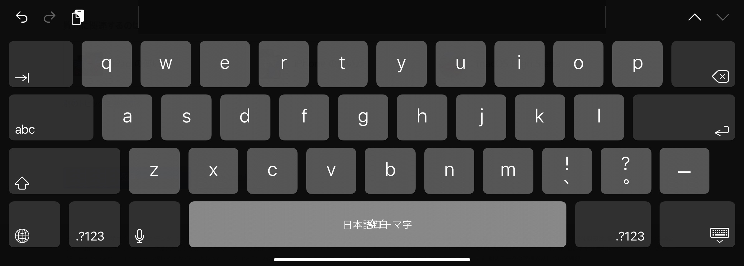 ipad Proの日本語ローマ字入力キーボードのスペースの文字がダークモードの時に重なってる