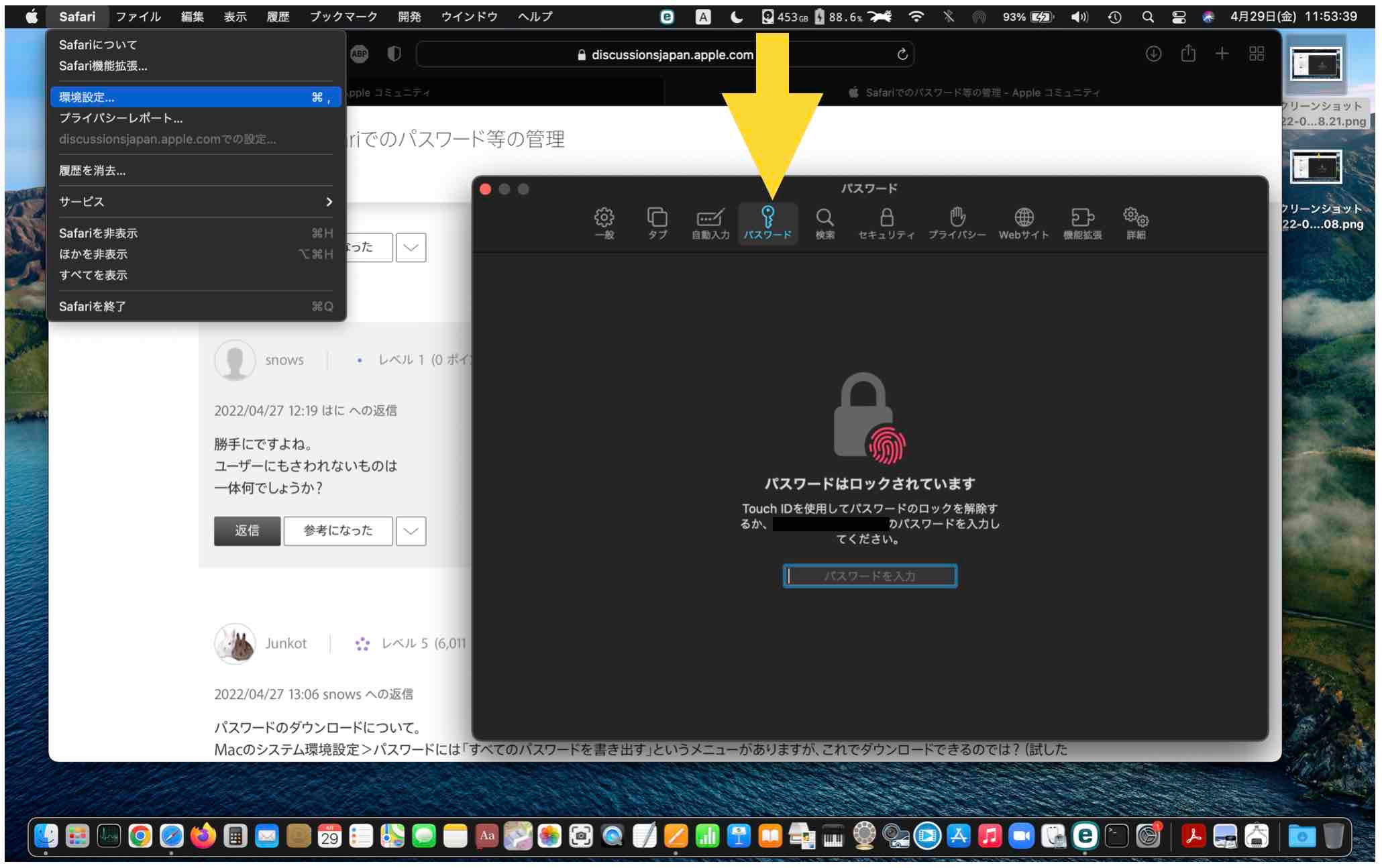 Safariでのパスワード等の管理