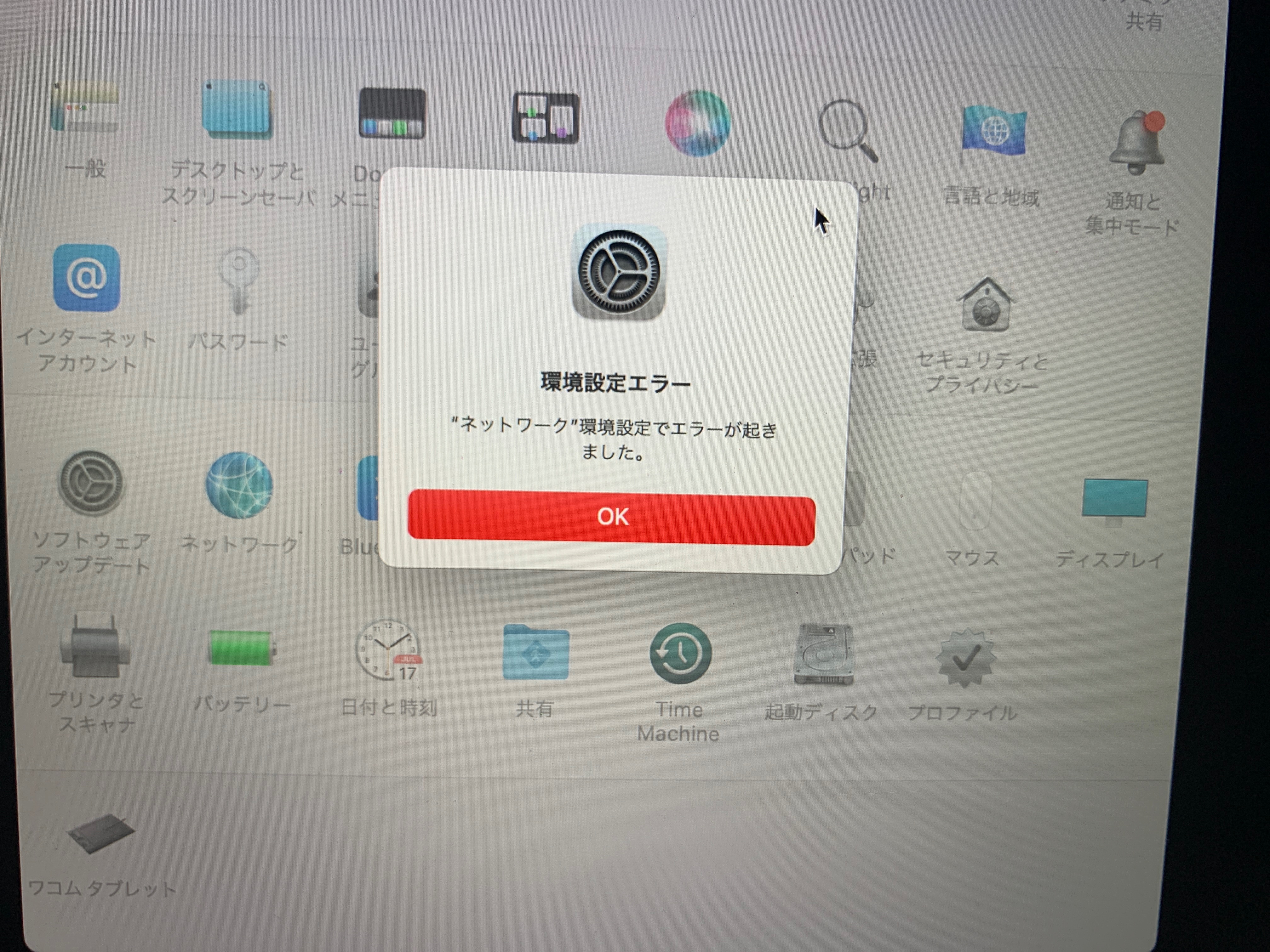 "ネットワーク"環境設定でエラーが起きました。