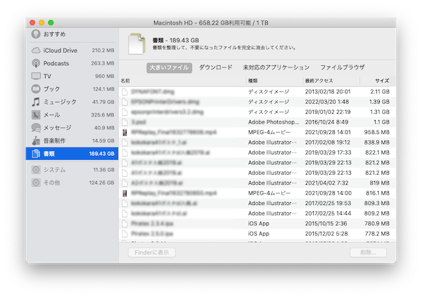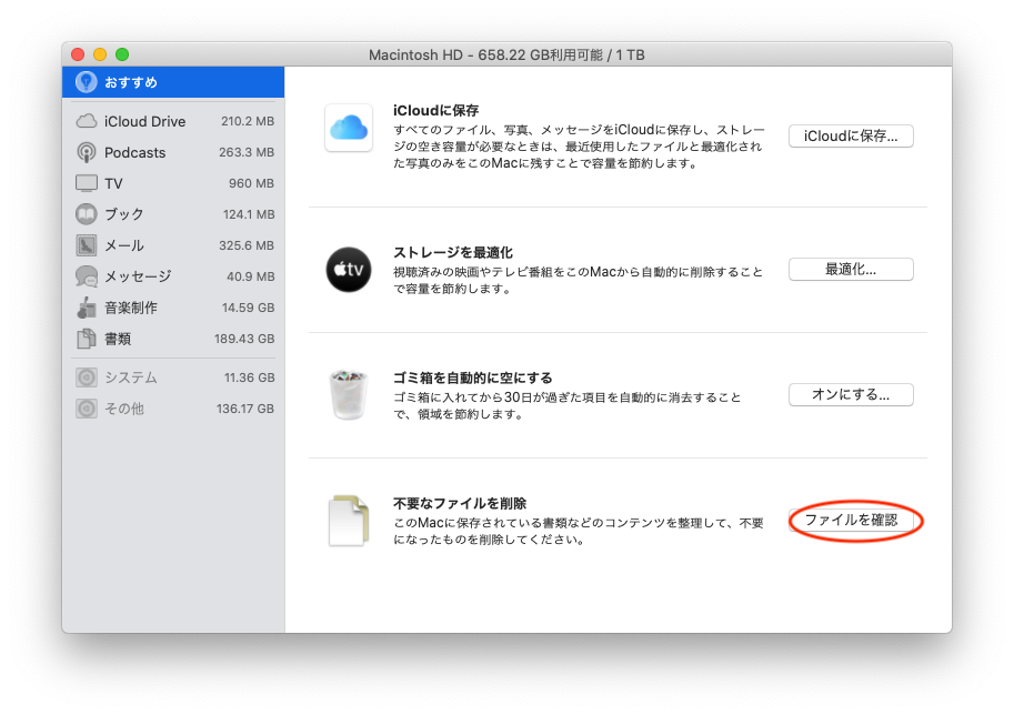 ”おすすめ”で、「不要なファイルを削除」という項目があります。