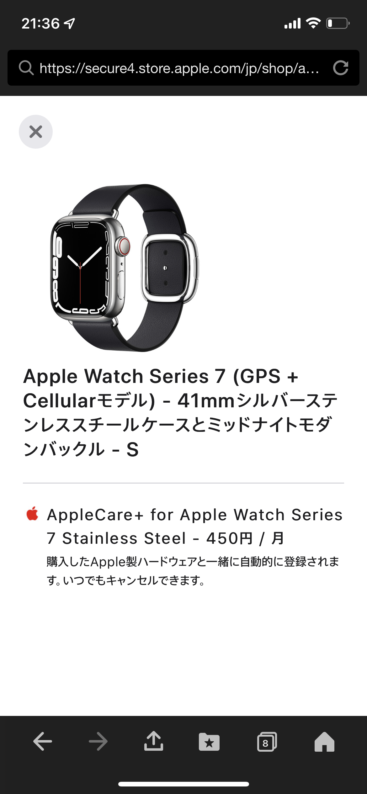 誤:Apple Watch Series 7 購入時に、ミッドナイトモダンバックルとの組み合わせで購入可能 ですので、以下の手順で購入して下さい。