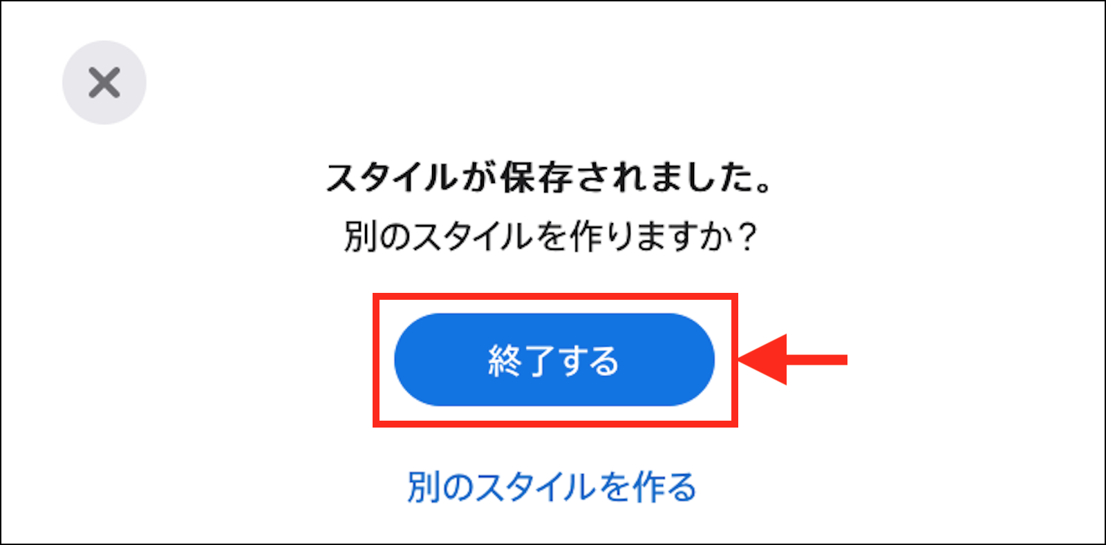 5.下の画像の様なポップアップが表示されますので、「終了する」ボタンをクリック(またはタップ)。
