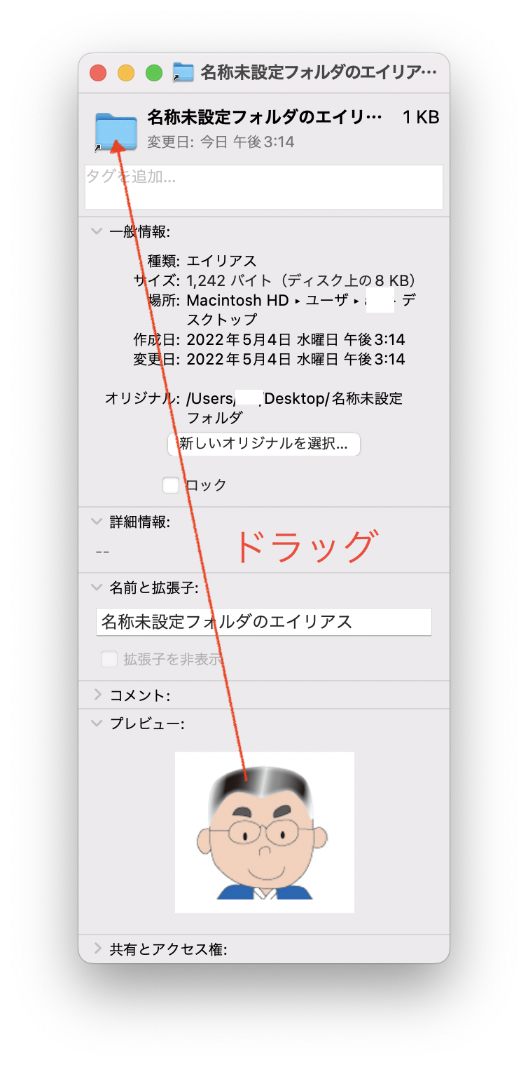 エイリアスではデフォルトのフォルダーアイコン(+左下に小さい矢印)になってしまいます。