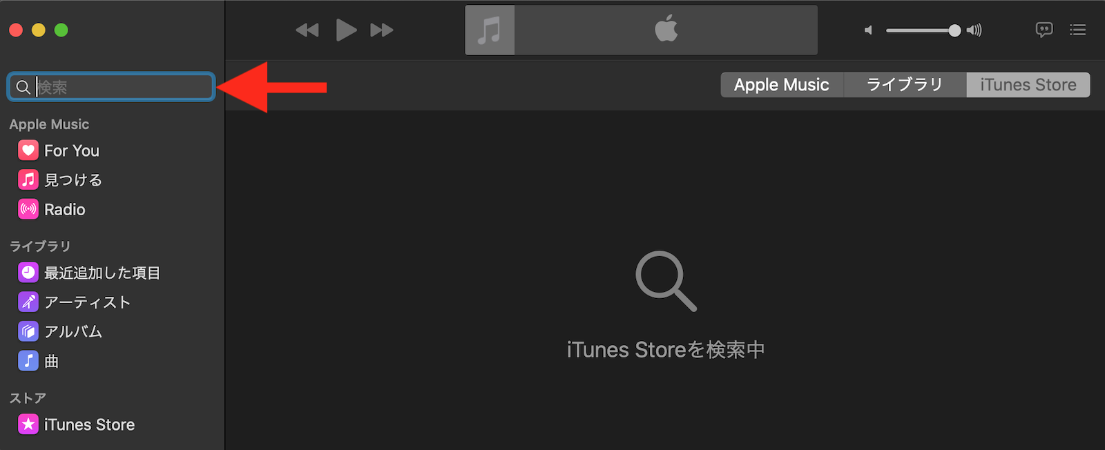 macOS Catalina(10.15.x)以降では、「iTunes」から「ミュージック」に変わりましたので、下の画像の様に 「ミュージック」ウインドウ左上に有る検索窓に入力して検索 して下さい。
