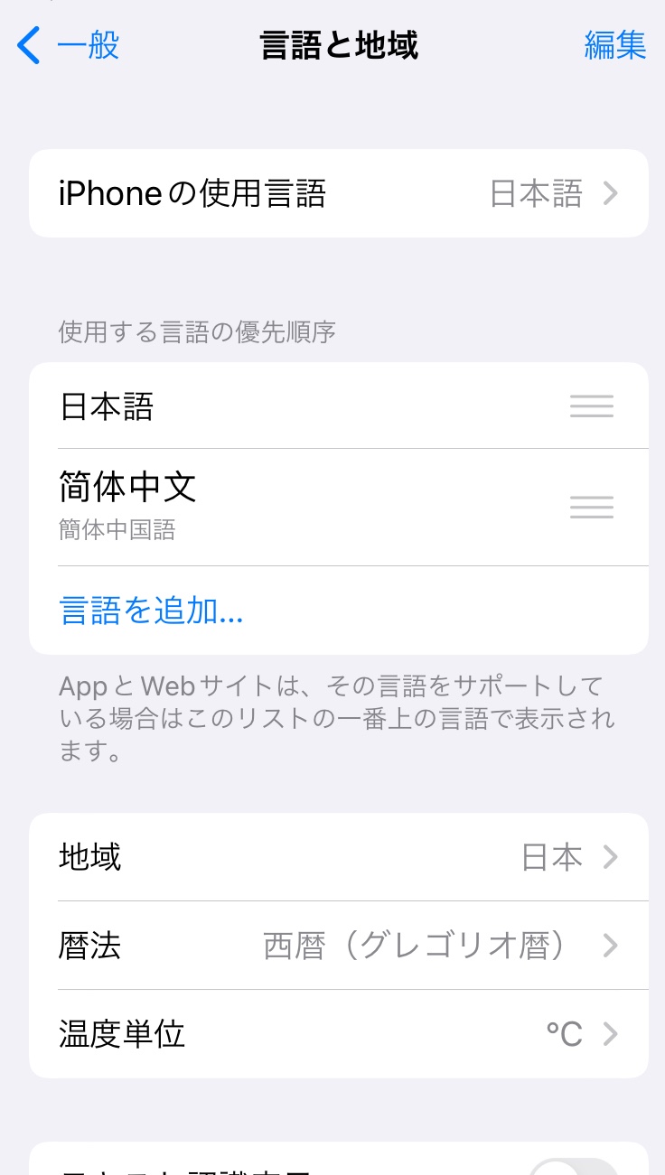 ヤマピコさんが指摘されているのは、毛だまさんが添付画像を挙げておられる “設定” > “一般” の中の “言語と地域” のことではありません。