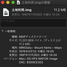 件の古いディスクイメージファイルは、よく見るとダウンロードのフォルダーに入っていたので、ネットから落としたもののようです。とりあえず開けて安心しました。