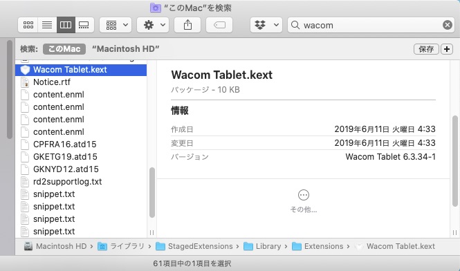EXtensions内にあるWacom Tablet.kextというファイルをどうしてもゴミ箱に移動できません。