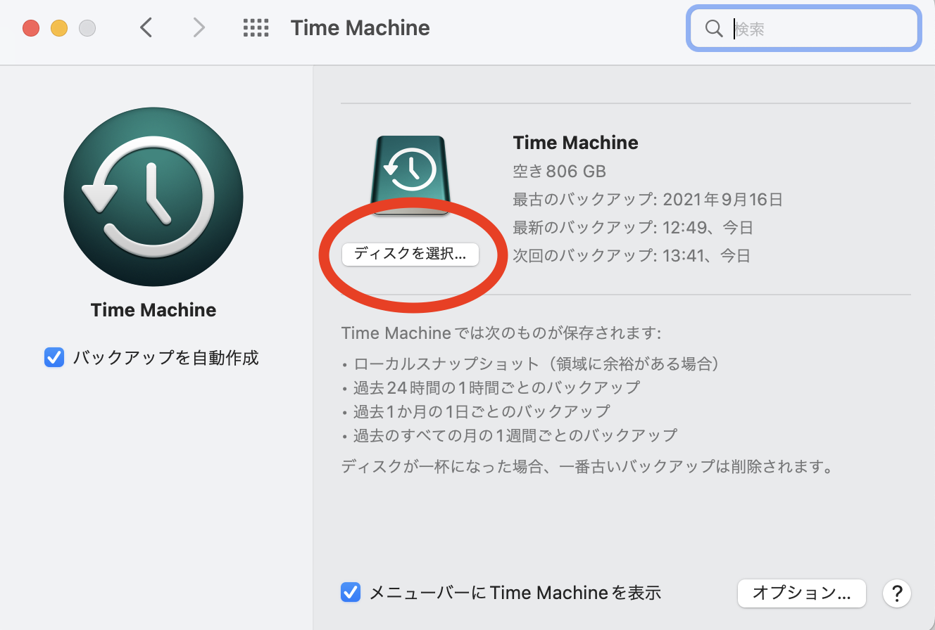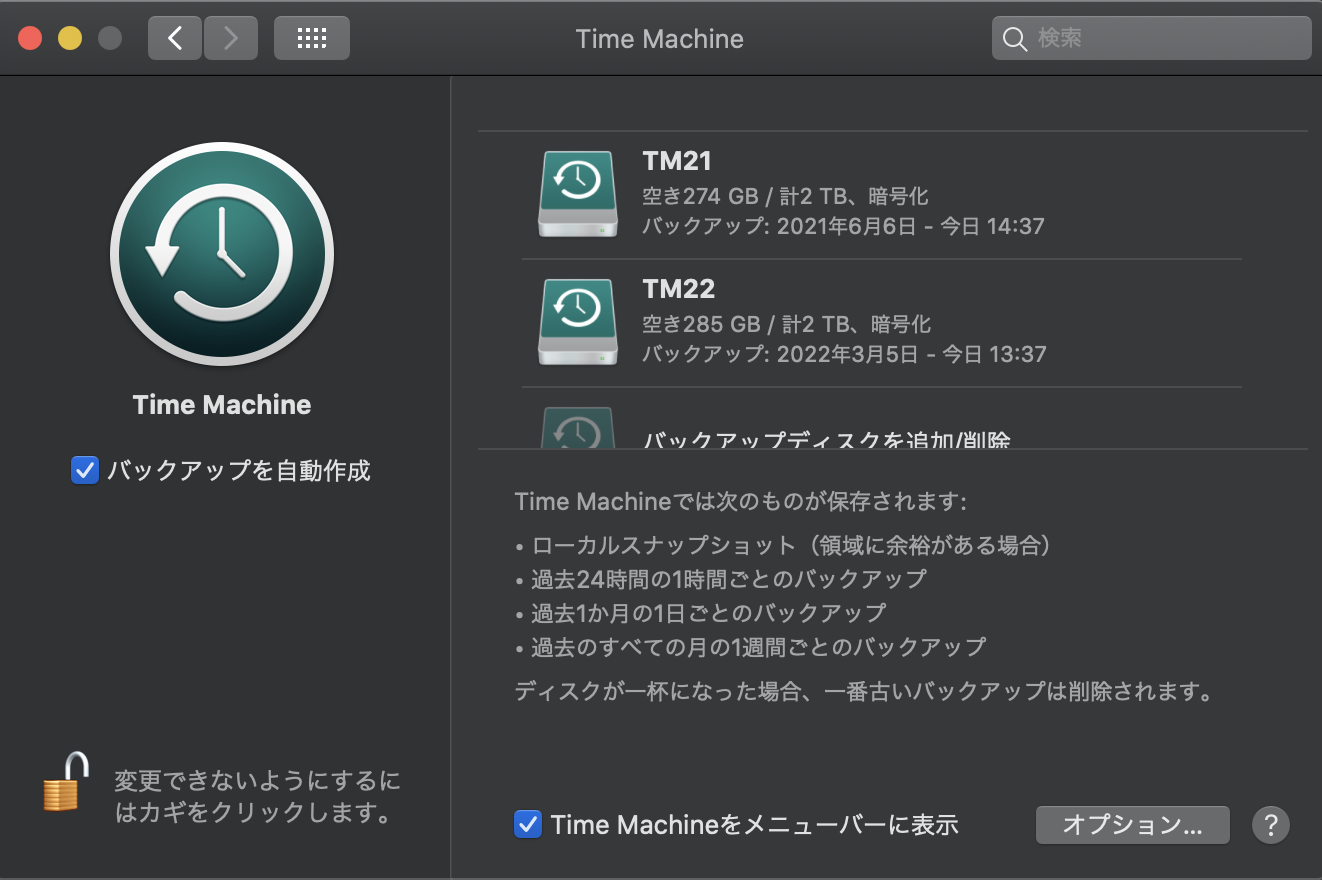 複数のタイムマシンが設定できているのでこちらの様な画面が出ていると思います。