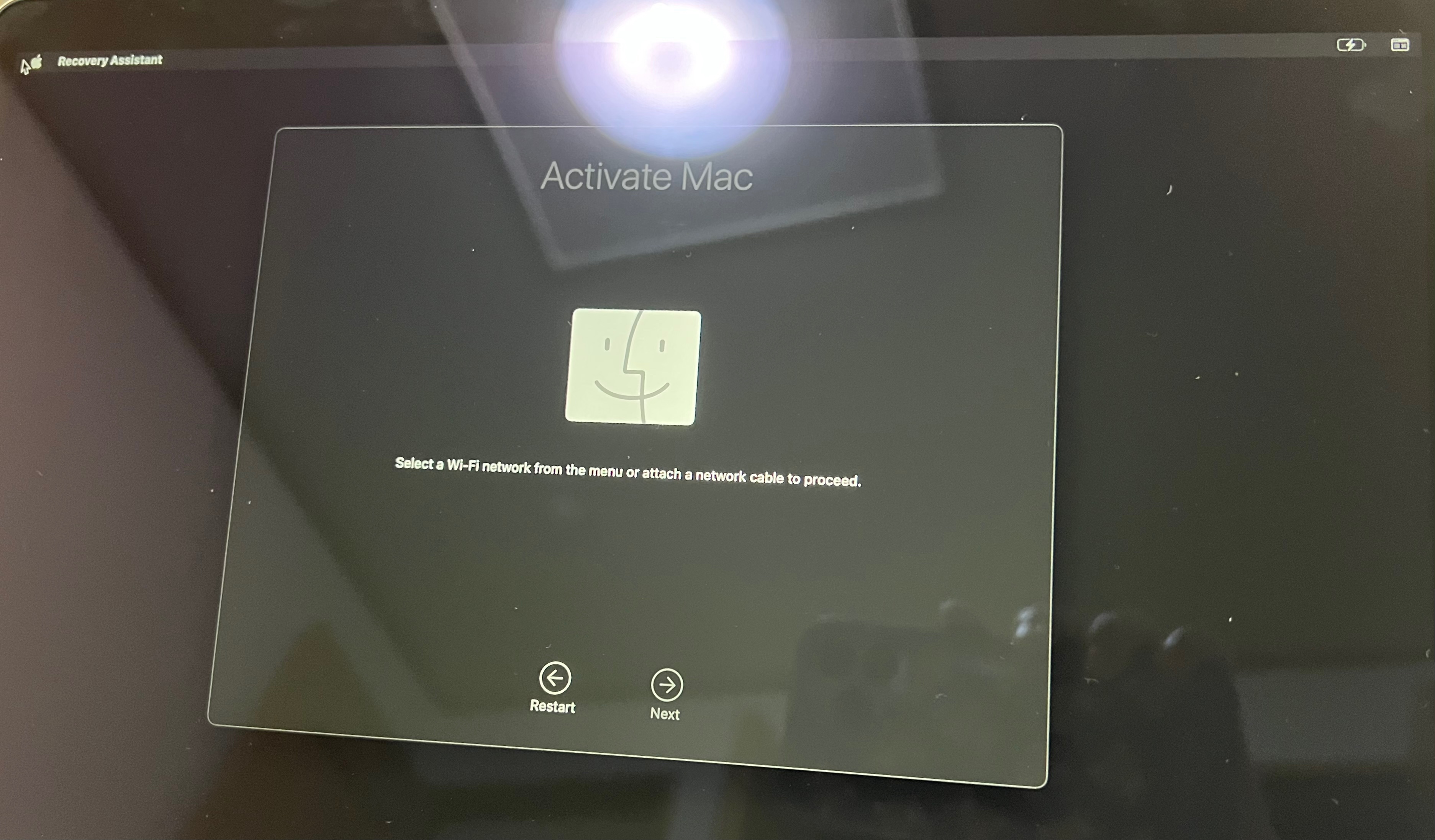 シャットダウンしても再起動してもWiFiマークが表示されずにこの画面から進めません...。
