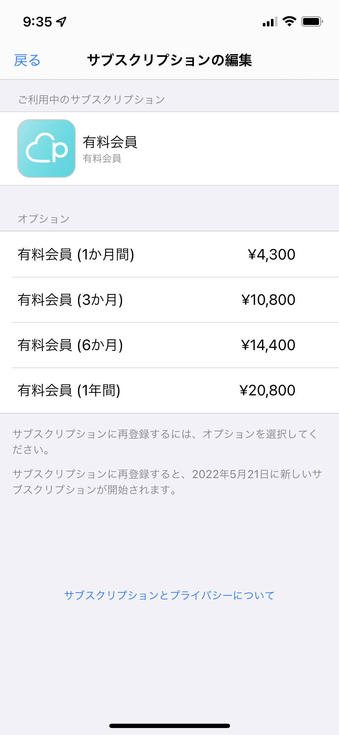 「サブスクリプションの編集」画面で、何れのオプションも選択されておらず、「サブスクリプションをキャンセルする」の項目が表示されていない場合 は、解約済みですので以降の支払いは発生しません。