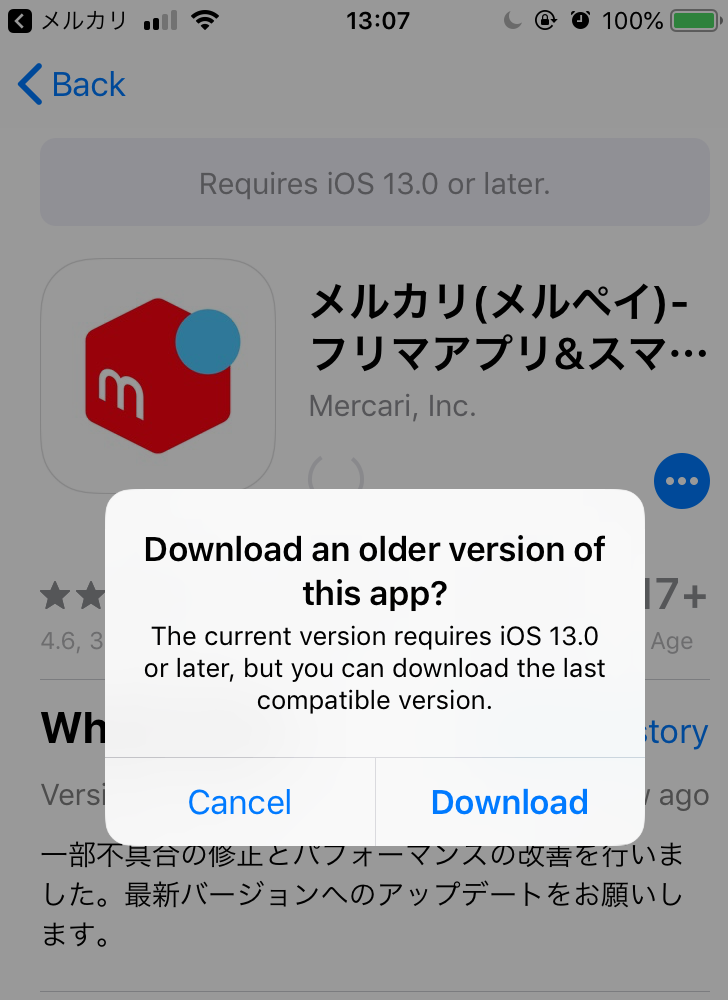 ちなみにメルカリはiOS12未満のサポート打ち切りを昨年7月にアナウンスしており、認識しております。