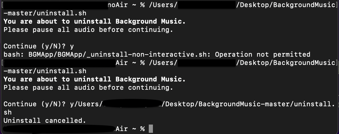 background musicをアンインストールしようと、ターミナルのウィンドウにuninstall.shをドラッグ&ドロップしたのですが、音声を一時停止するよう表示が出ます。