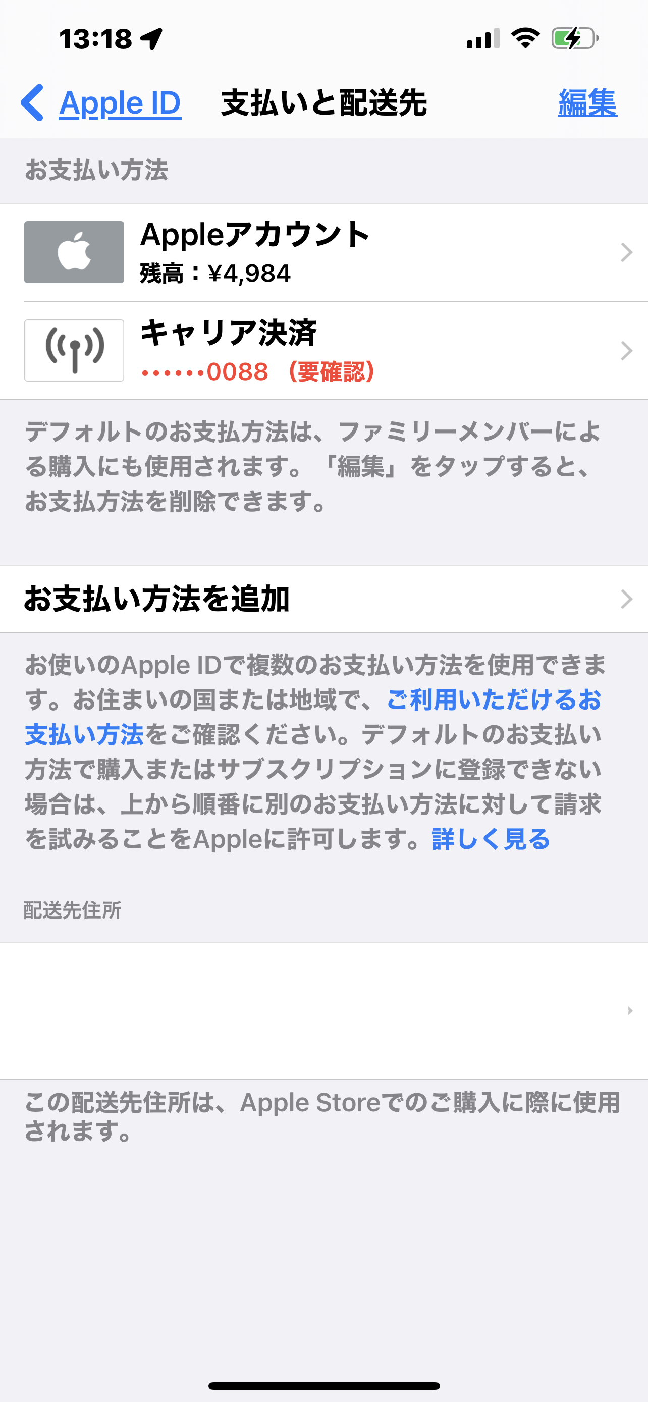 表示されている場合は、まずその問題を解決しないと、Apple ID への入金を含め、他の「お支払い方法」を追加しても購入出来ない場合が有ります ので、お使いのカード会社やキャリア等に問い合わせて見て下さい。