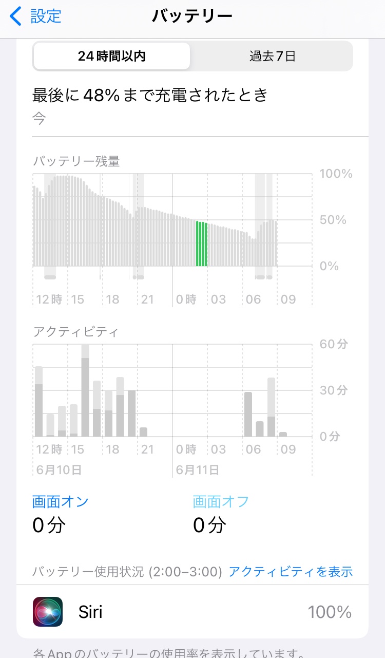 下記画像の、0〜6時、全てショートカットアプリが動いたようなアクティビティになっていました。
