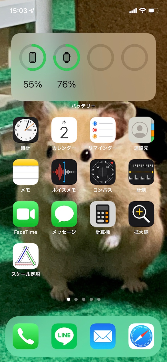 下の写真のように、ホーム画面に”バッテリーウィジェット”を追加すれば、ホーム画面でバッテリーの%残量を確認できます。