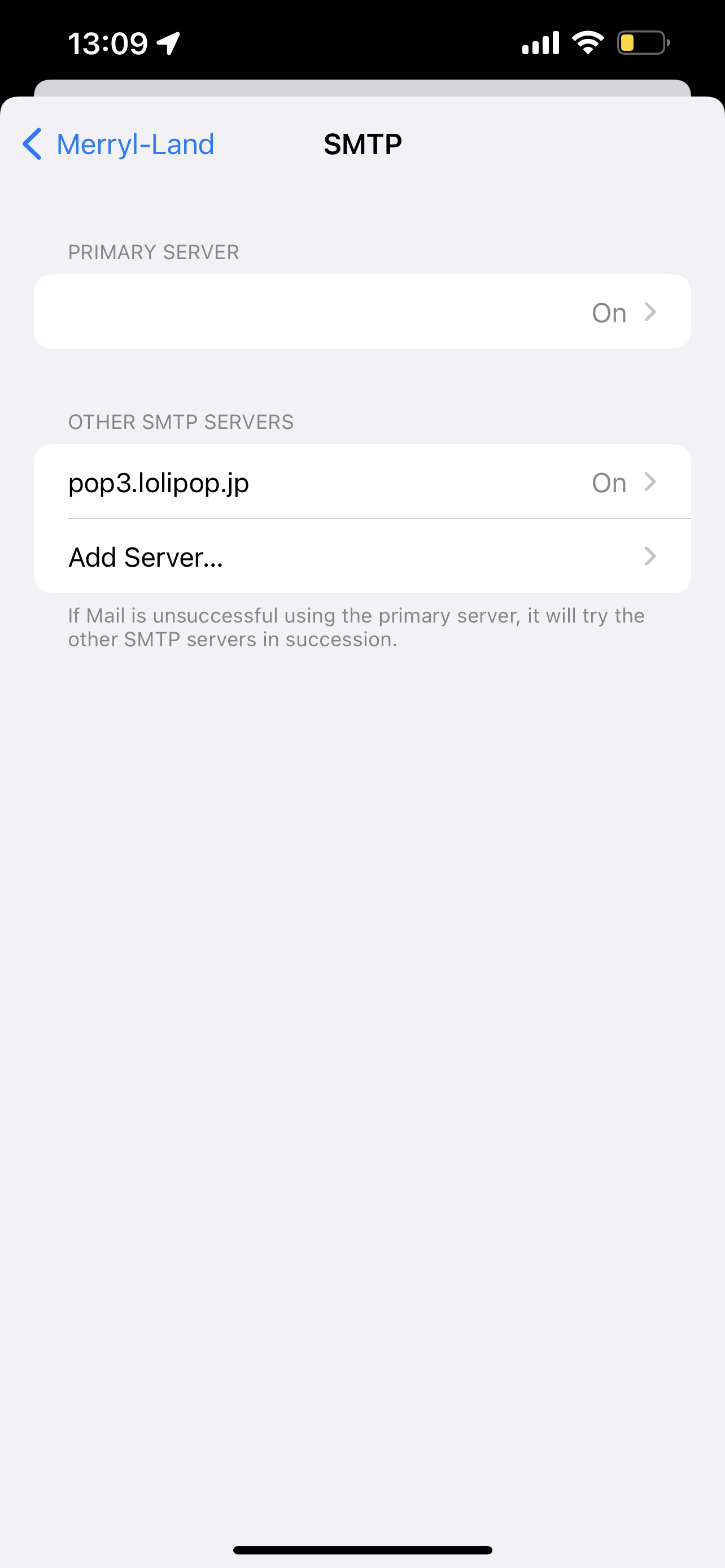 MerrylandEメールの送信サーバーにGmailの送信サーバーを指定してみましたけどダメでした。。