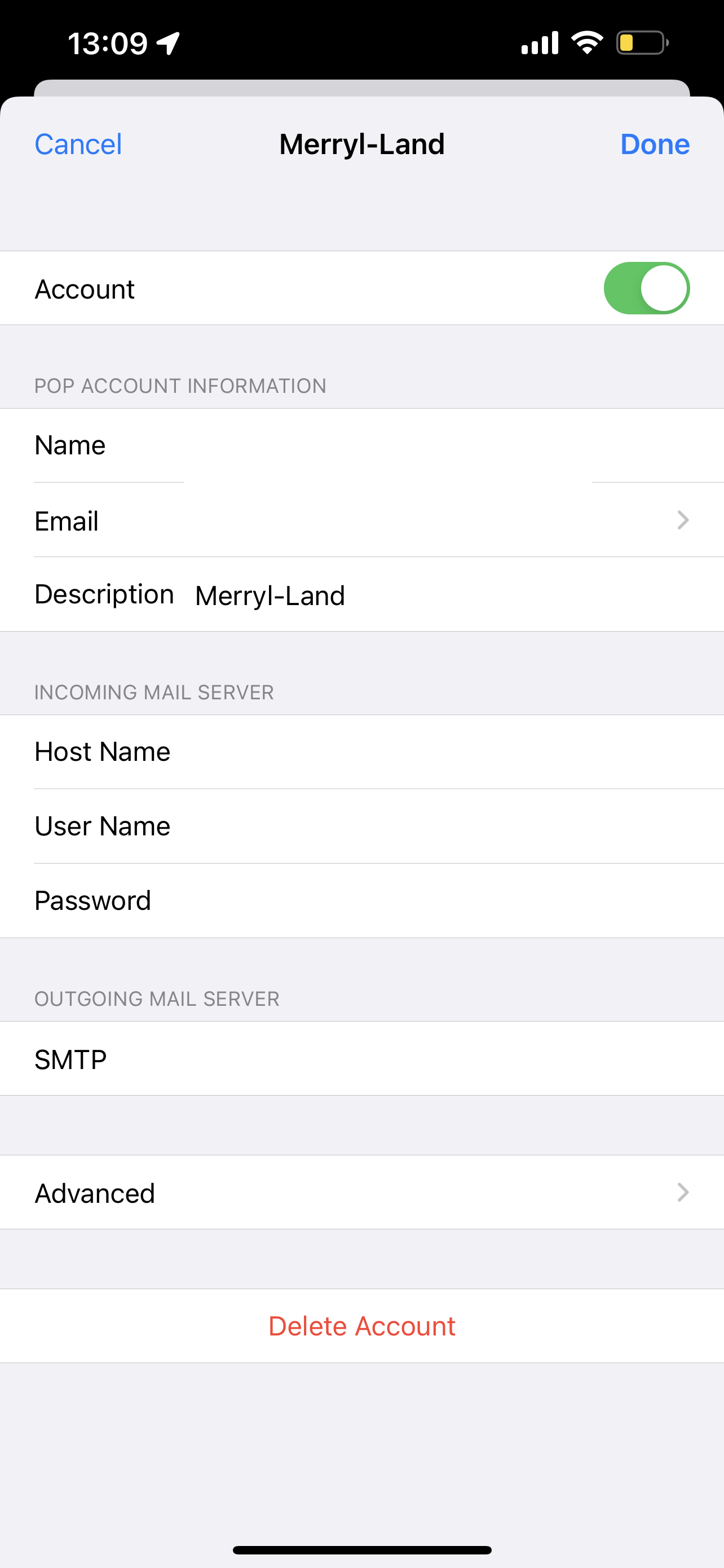 会社のEメールをiPhoneメールアプリに保存し、Eメールの送信ができない。