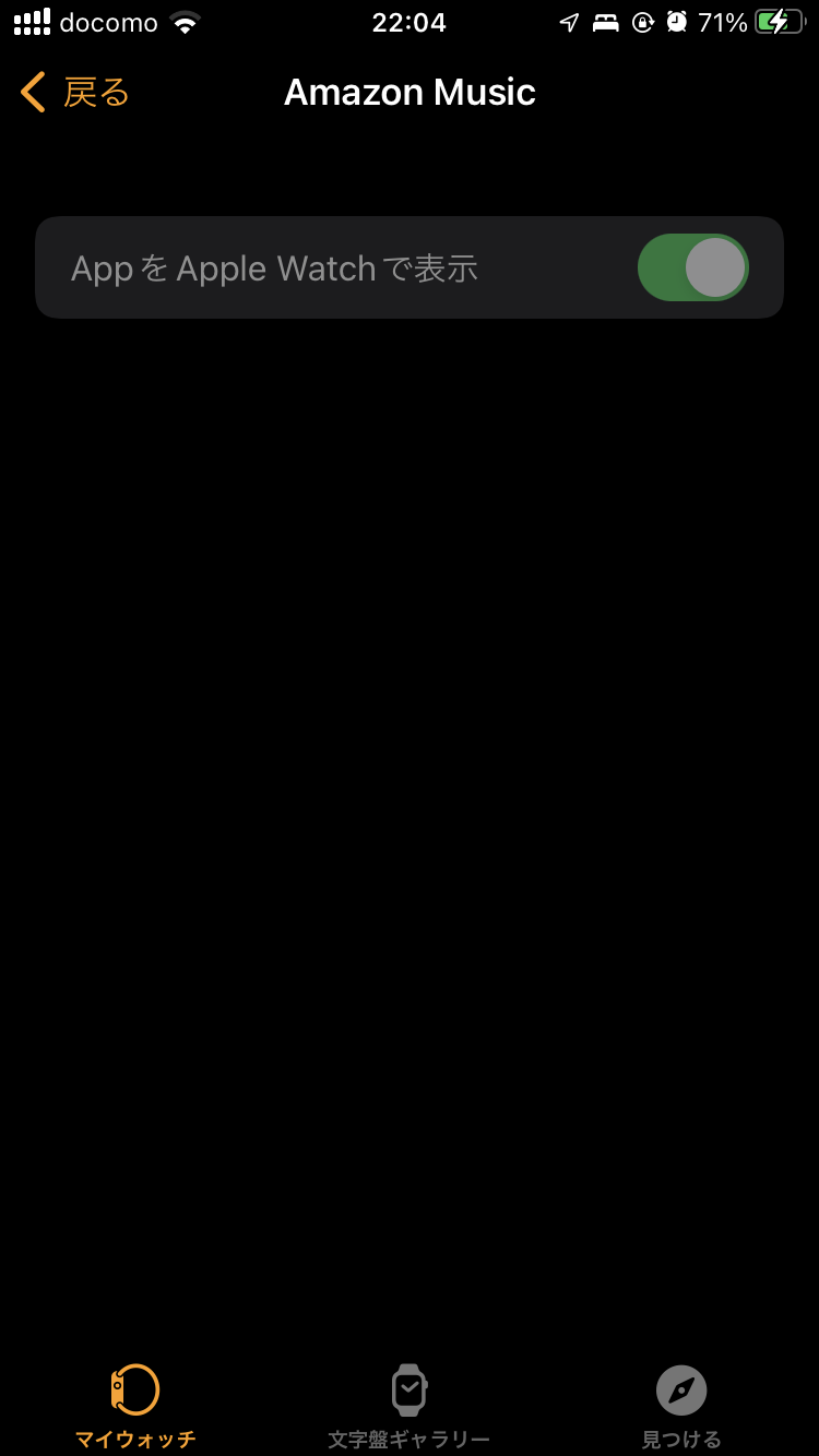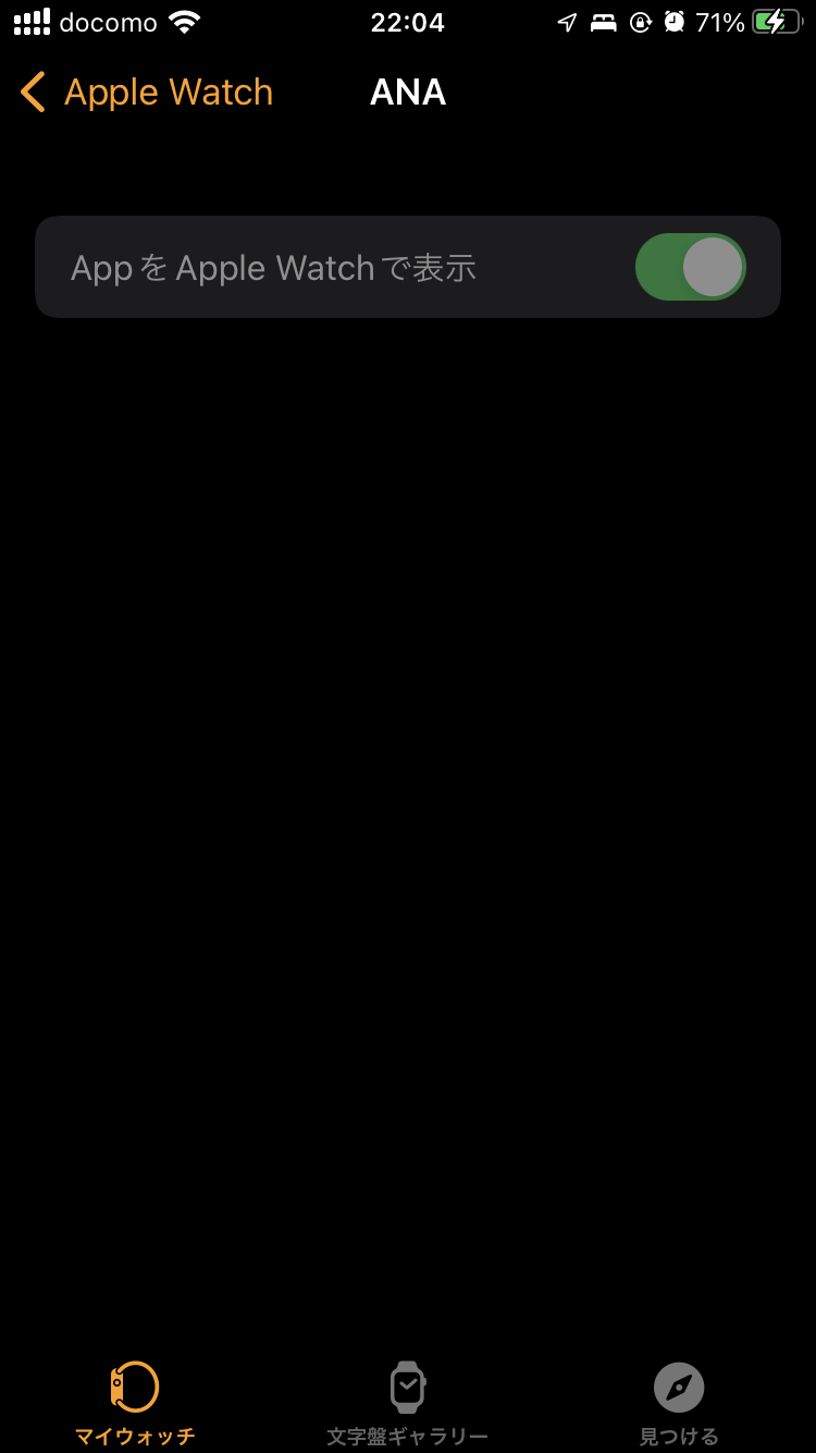 どのアプリも"appをApple Watchで表示"の項目が黒い網がけの様になっていてオンの状態から変更できない。