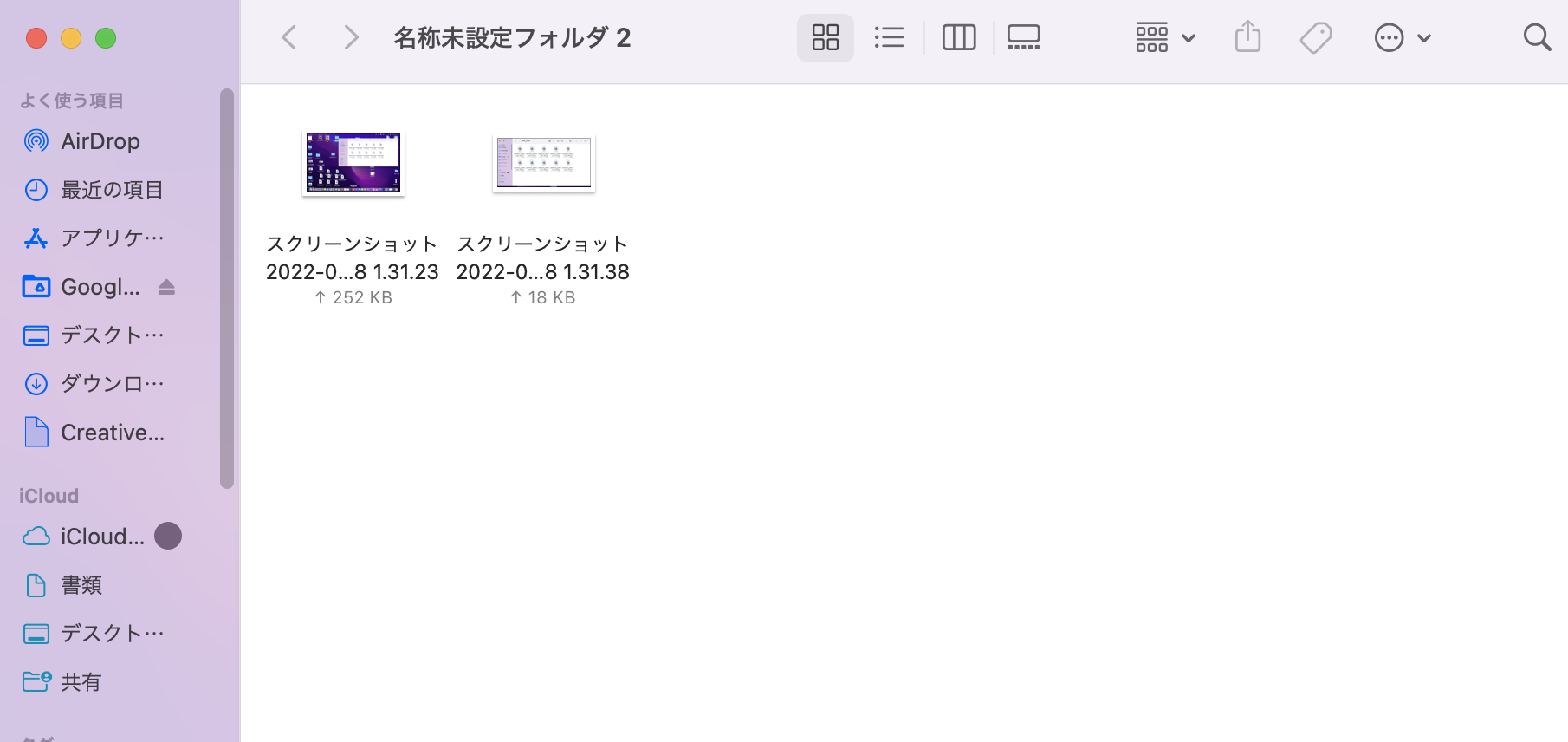 今撮ったスクショをフォルダに入れるとまたこのような表示になってしまいます。