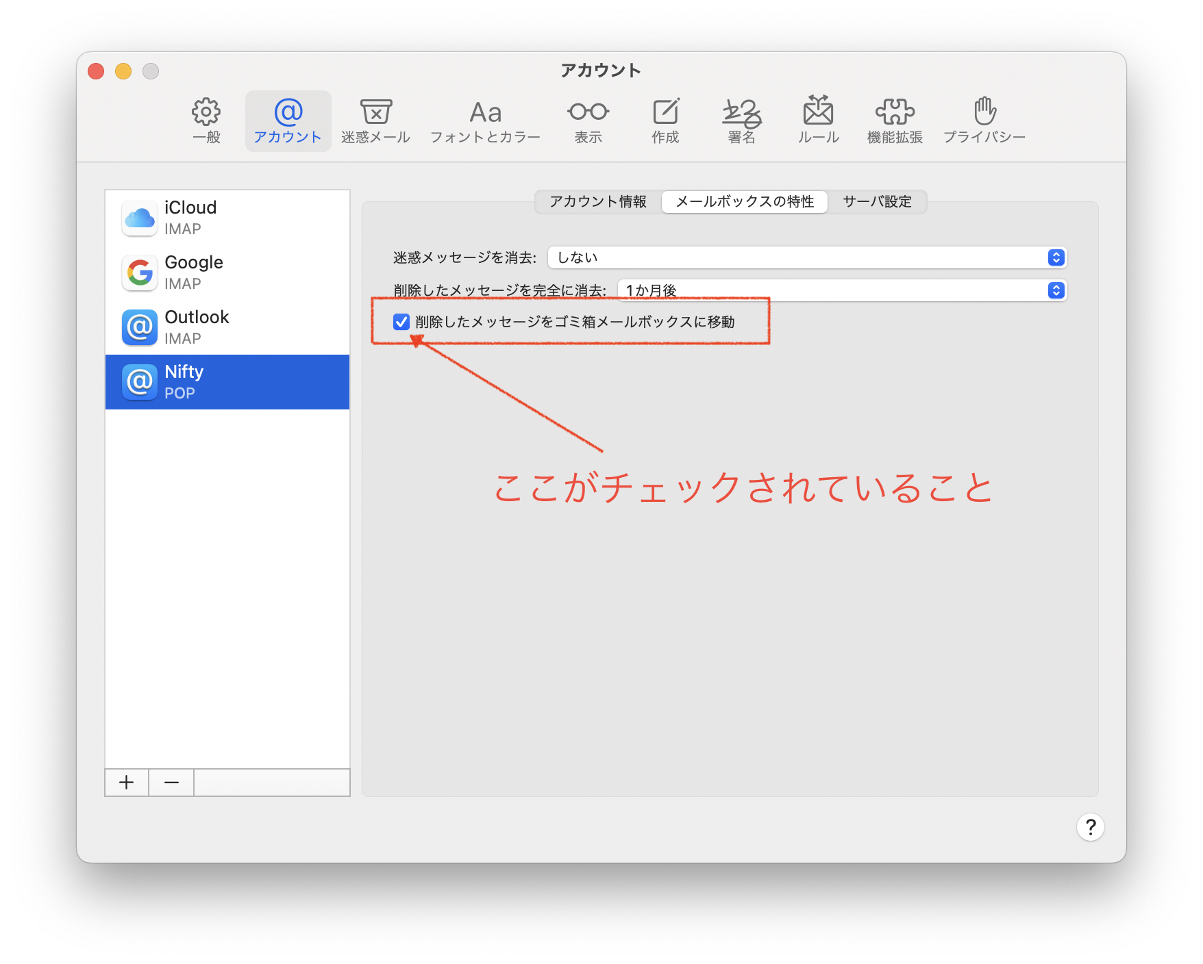 ということは、ゴミ箱をまとめて並べるには、@niftyをIMAPにしないとダメだと言うことですね。