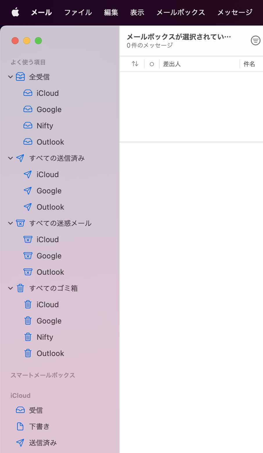※ ”アカウントを跨ってメールボックを並べ替える”ことはできません。