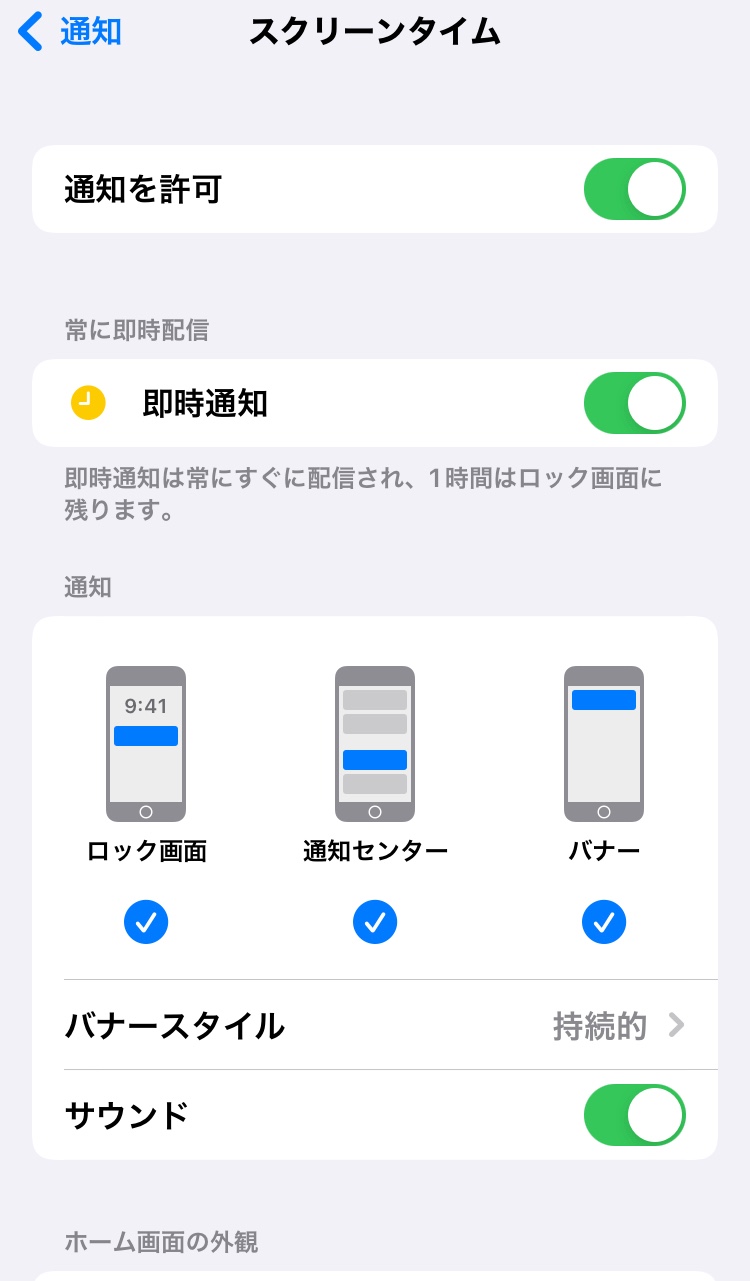 あとは、設定>通知>スクリーンタイムで、確認することでしょうか。