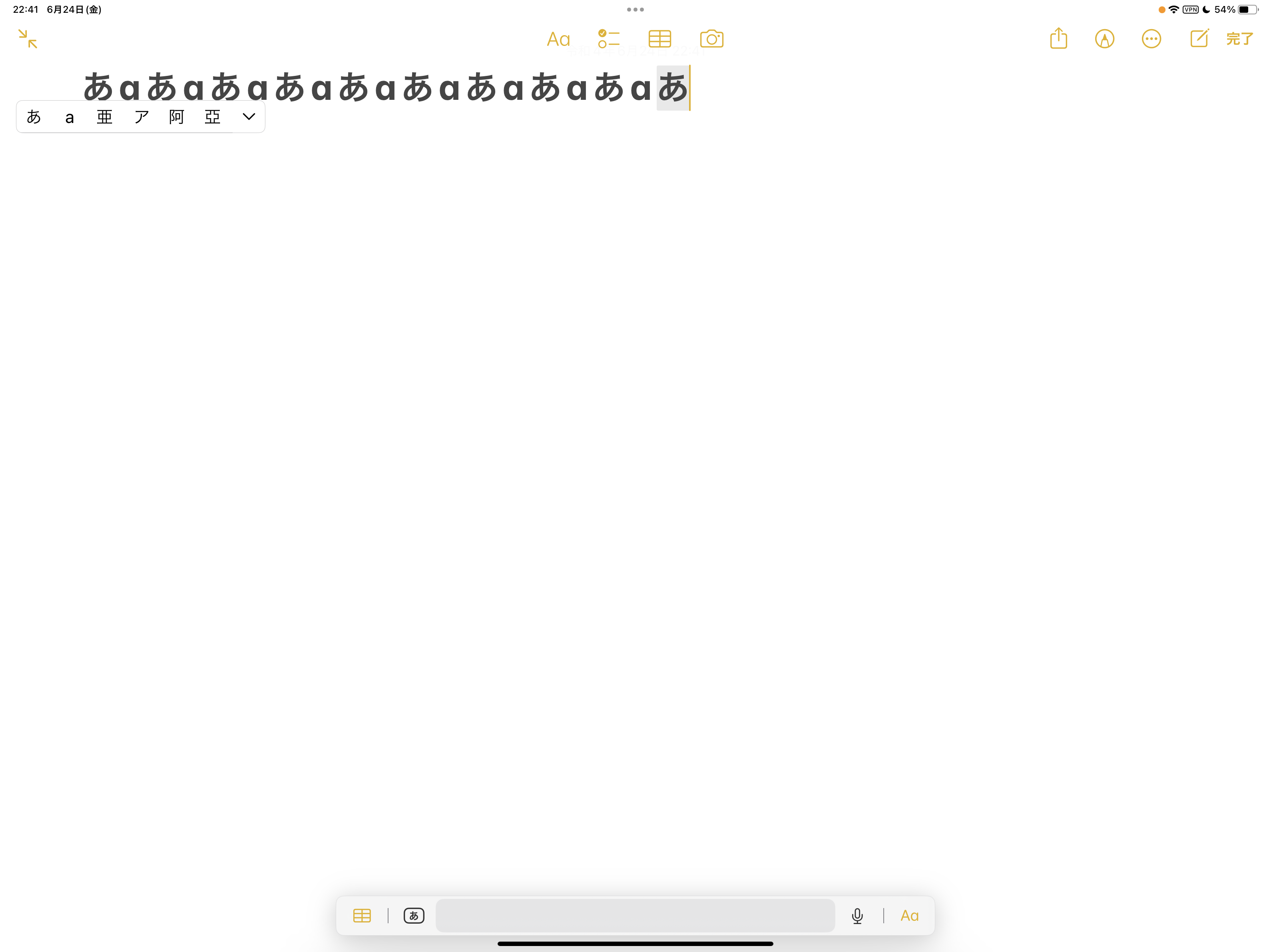 ❶US配列のApple純正キーボードでユニバーサルコントロールし、iPad側をCapsLockキーで日本語入力・英語入力ソースを切り替えた時に、画像のようなバグが発生するかどうか。