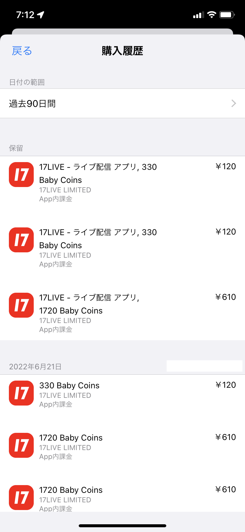 17LIVEアプリ内でチャージしましたが850円の決済処理が保留のまま