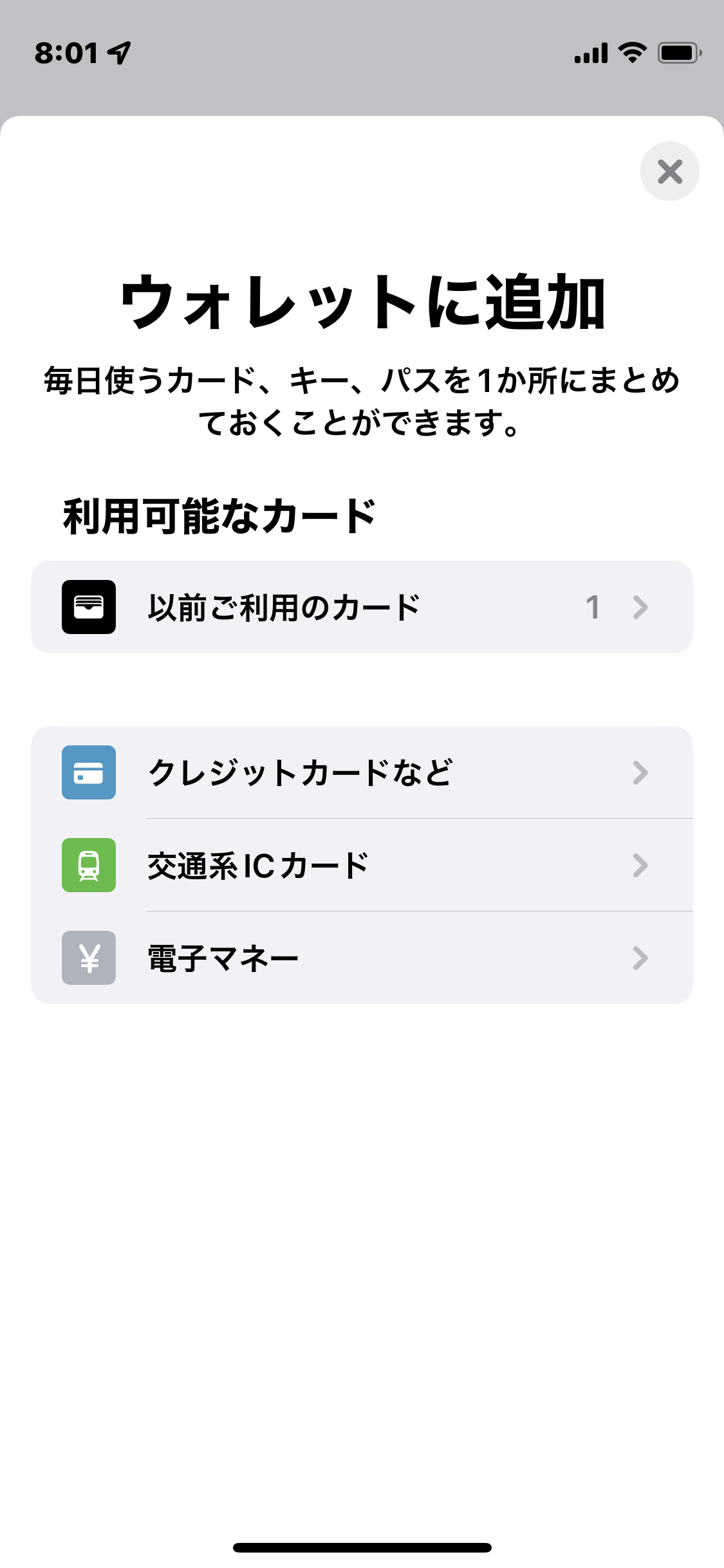 iPhoneのアプリ「ウォレット」にカードを追加できません。