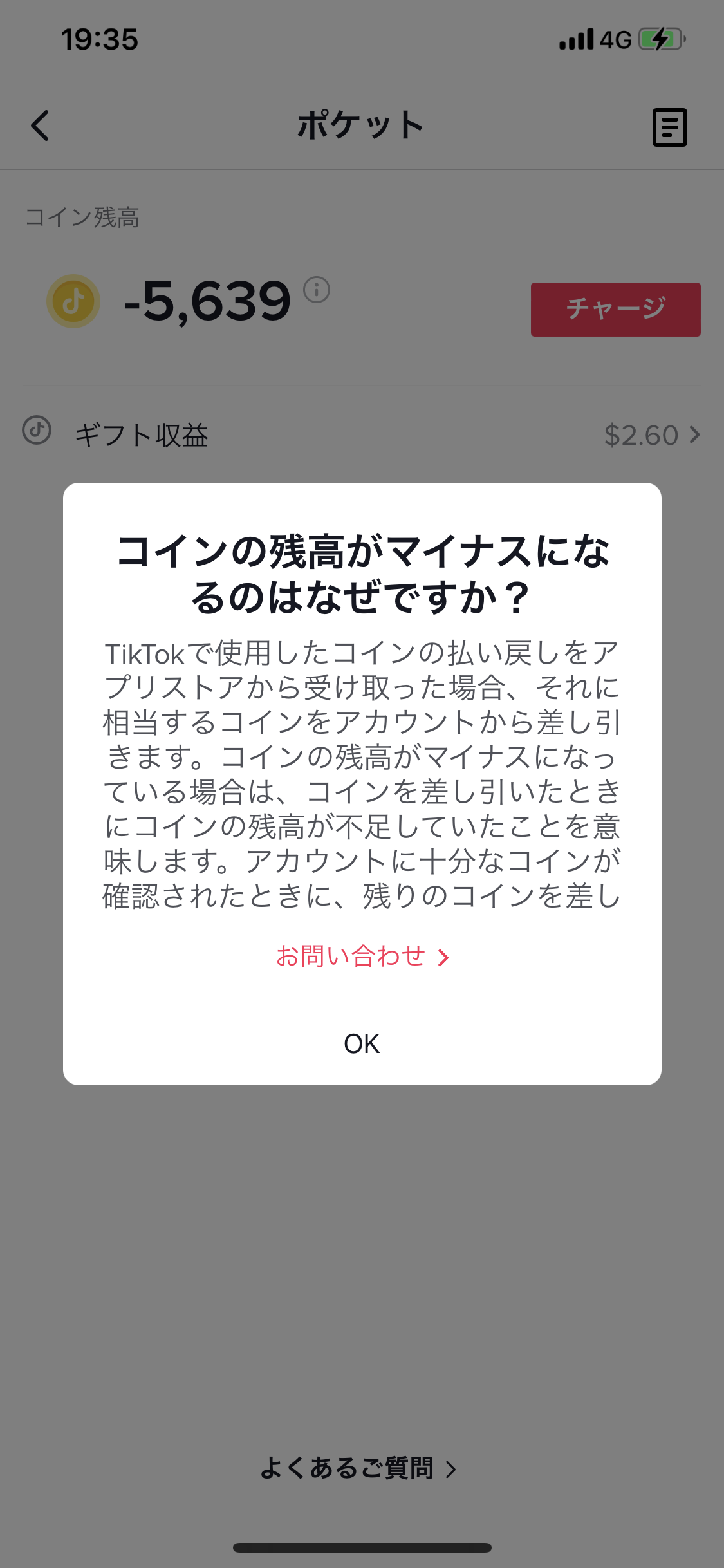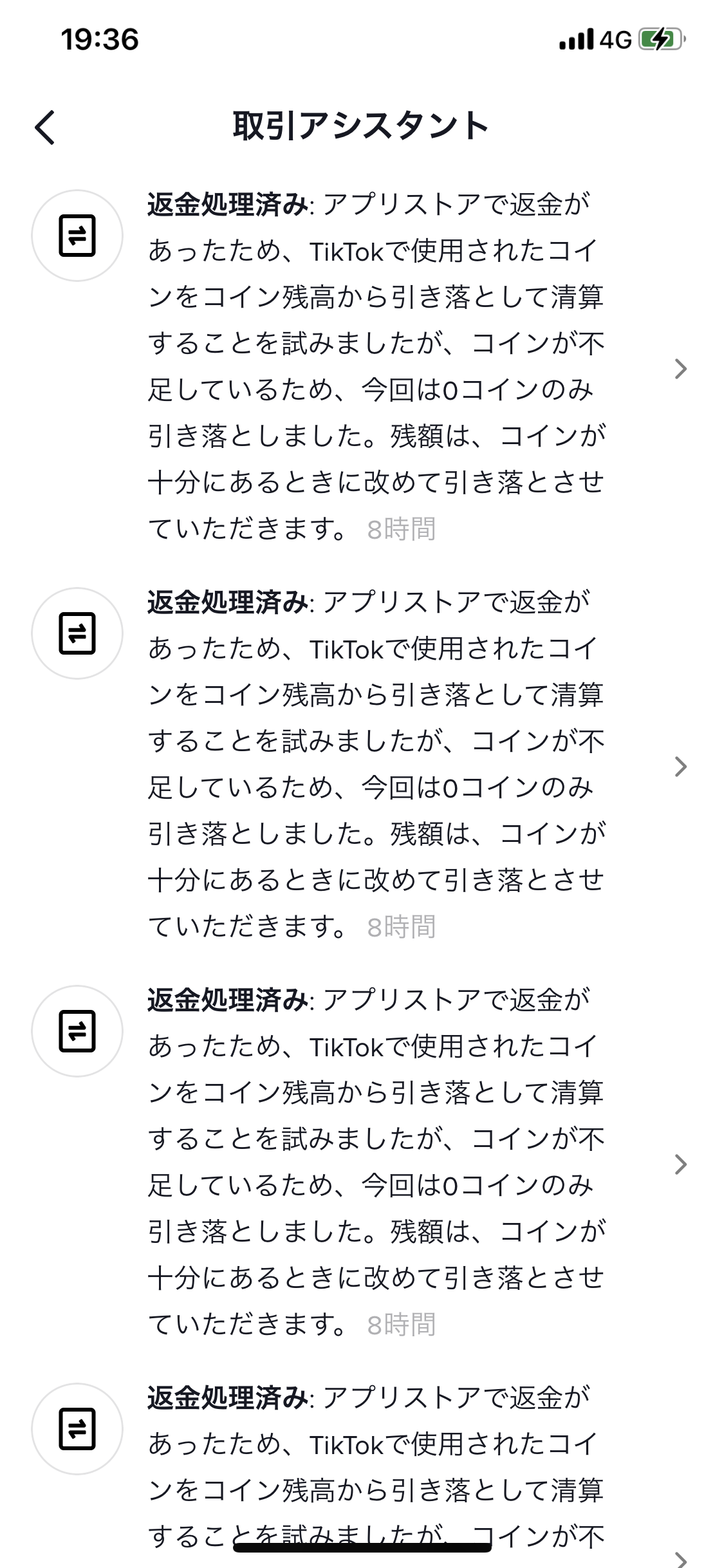 たぶんTikTok側は問題なくコインが増えていたはずなので返金に伴ってコインを減らしたのだと思いますが。