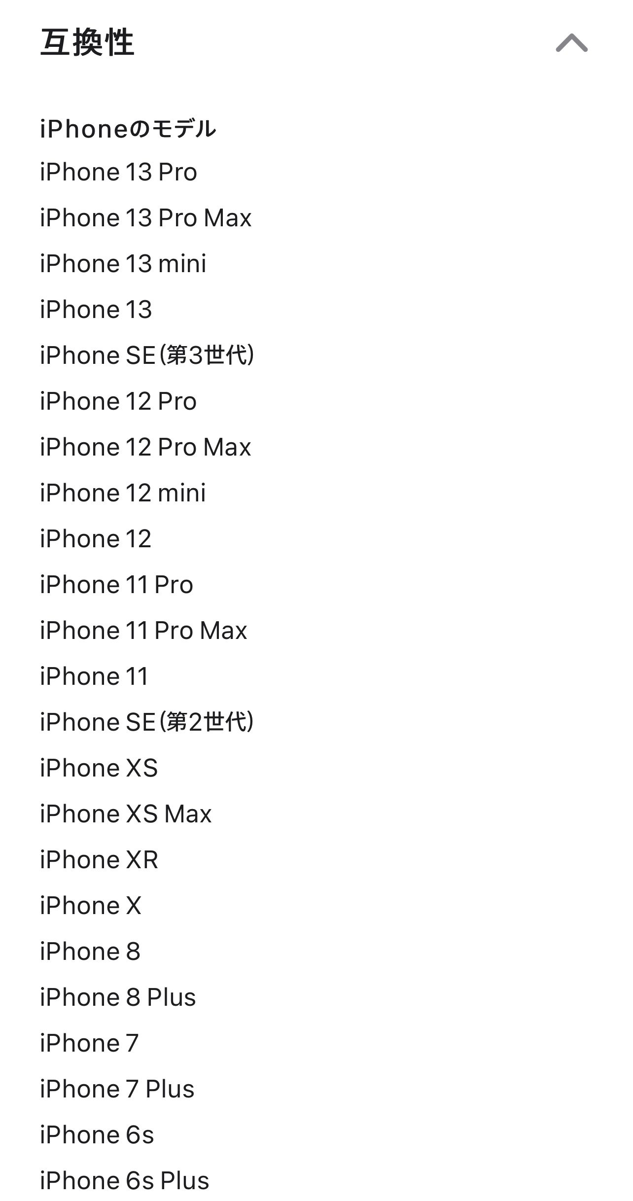 また、どれが合うのかということですが、ページ内に「互換性」というところがあり、どのiPhoneに対応してるか一目でわかる部分があります。