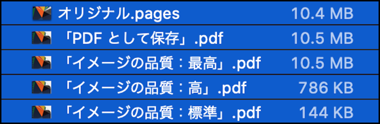 PagesをPDF化するときに、「高画質」にするより、画質をそのままでファイルサイズを下げない方法を教えてください