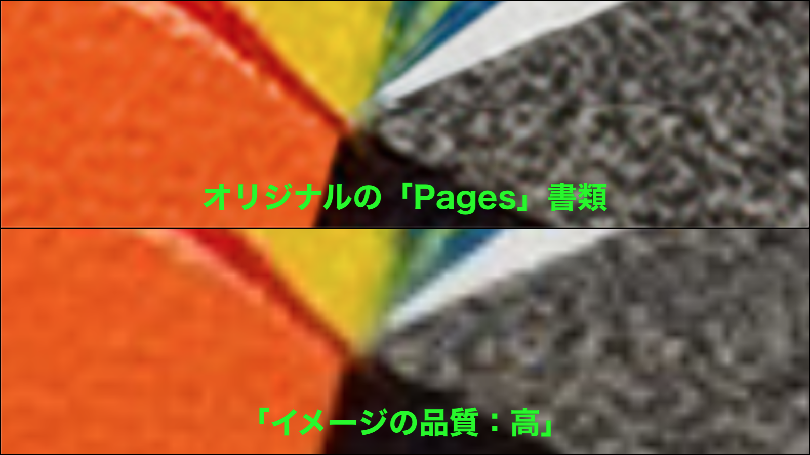 【 オリジナルの「Pages」書類と「ファイル」メニュー >「書き出す」>「PDF」>「イメージの品質:高」の比較 】