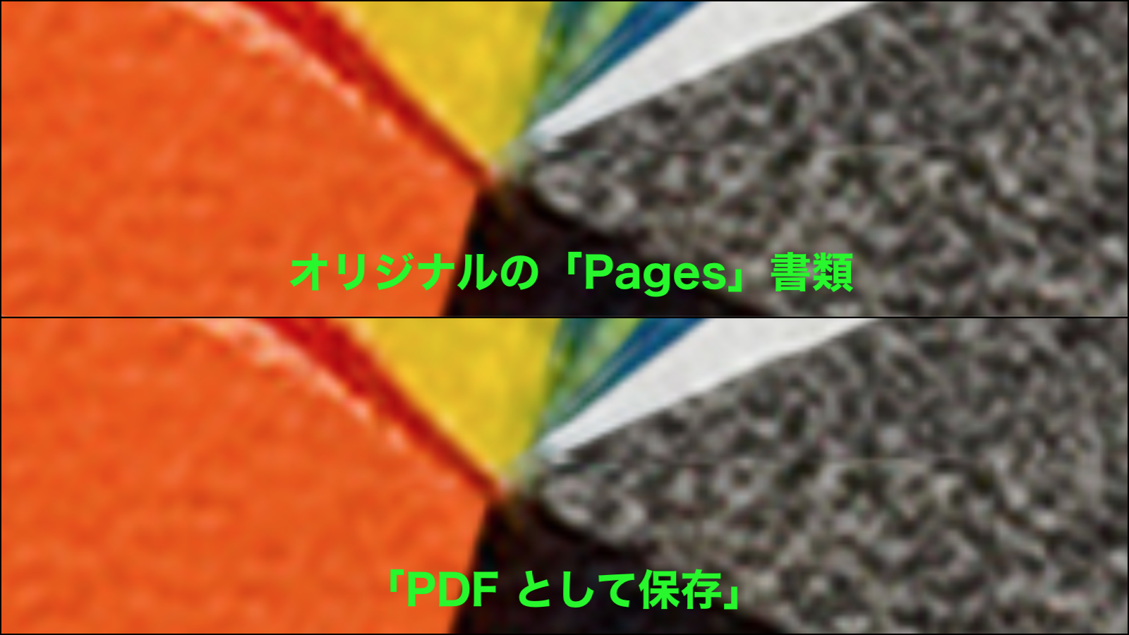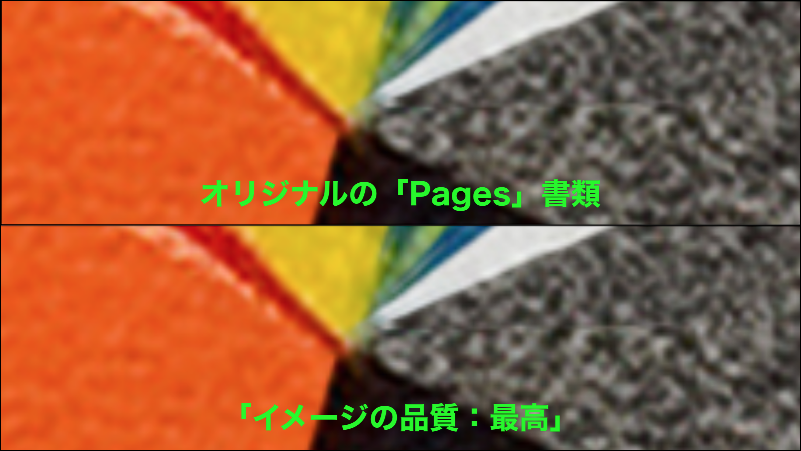 【 オリジナルの「Pages」書類と「ファイル」メニュー >「書き出す」>「PDF」>「イメージの品質:最高」の比較 】