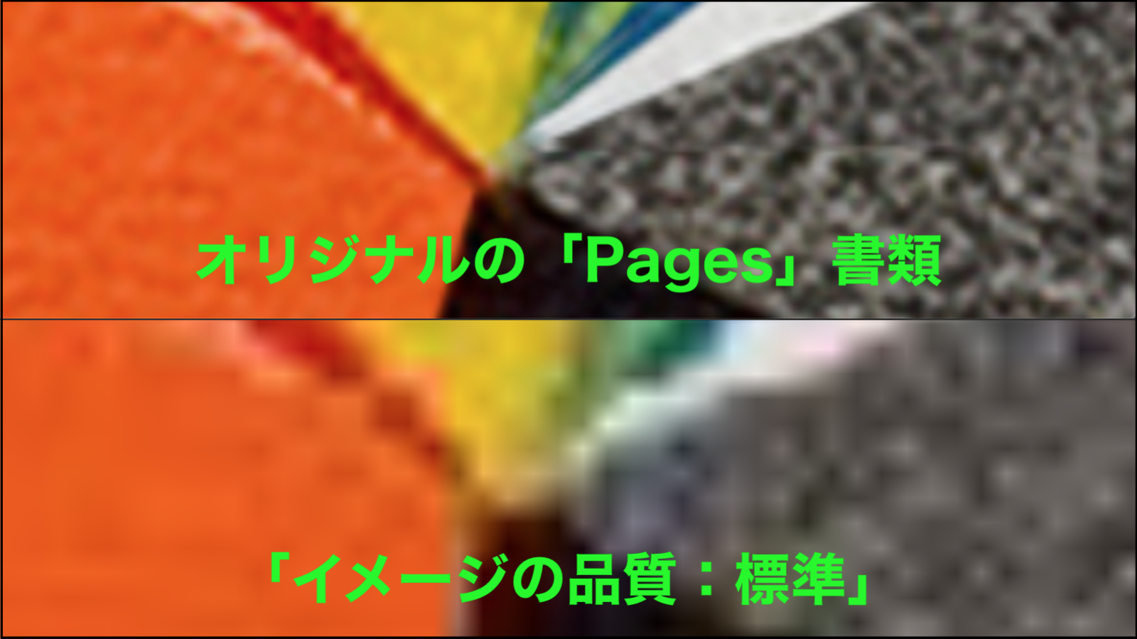 【 オリジナルの「Pages」書類と「ファイル」メニュー >「書き出す」>「PDF」>「イメージの品質:標準」の比較 】