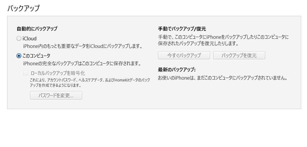 iTunesの「今すぐバックアップ」ボタンが押せない