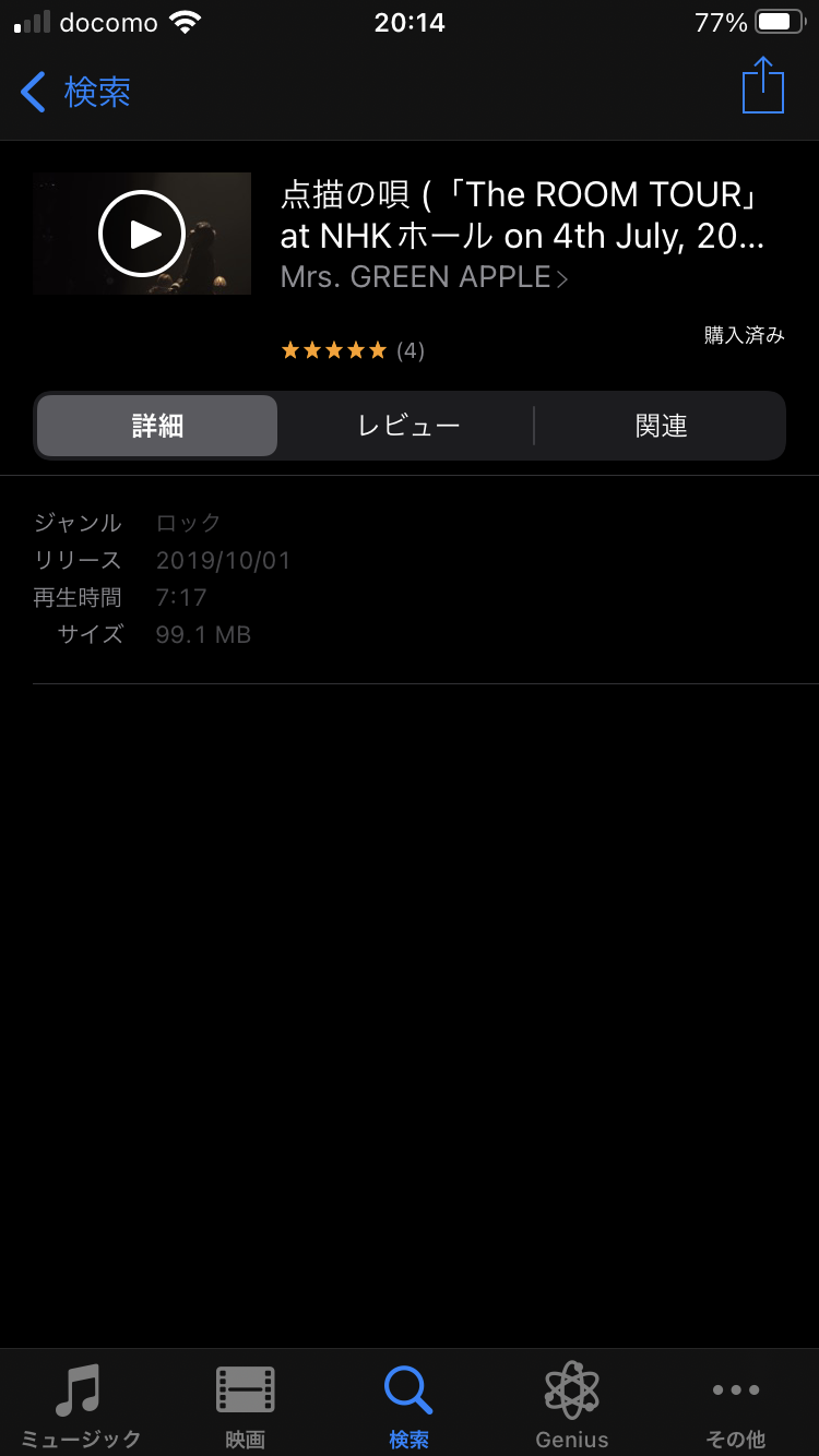 18・19のミュージックビデオがアップルミュージック内で見つからなかったので、iTunes Storeで再ダウンロードしようとしましたが、再ダウンロードのボタンがなく、「購入済み」の文字があるだけだったので、再ダウンロードすることができませんでした。