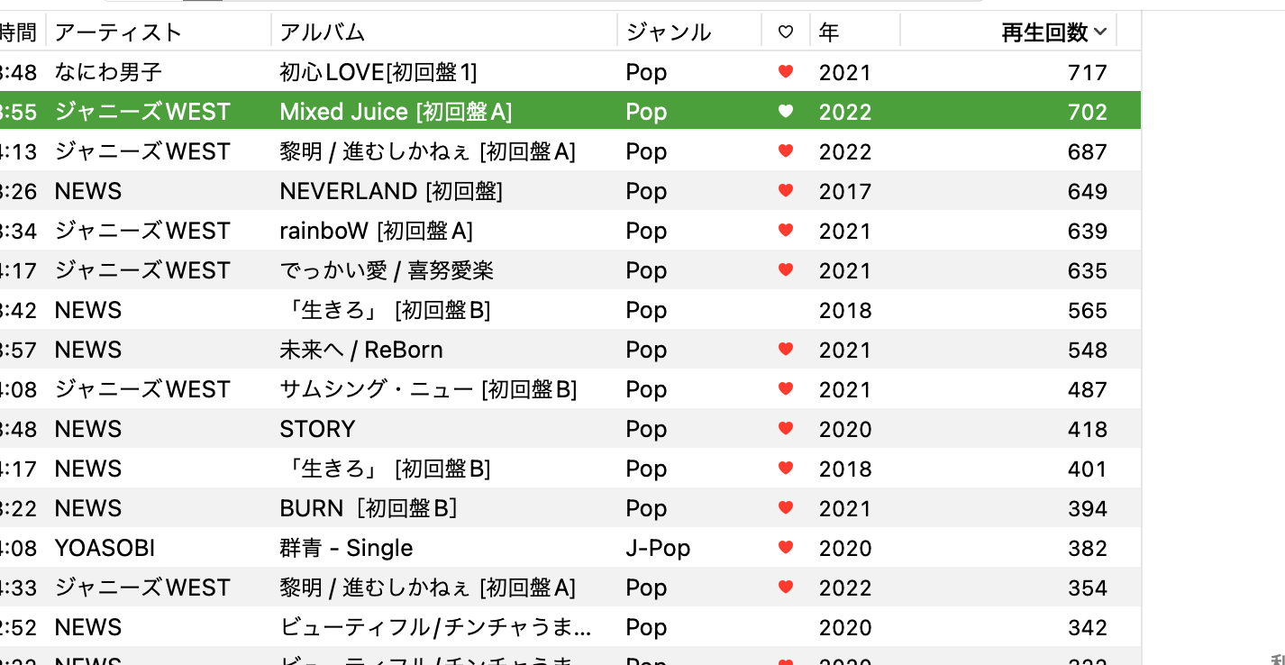 私は以前からCDから取り込んでいた音源をiPhoneで聴いて時々MacBook Air(OS:Monterey)とケーブルで接続して再生回数を見ていました。