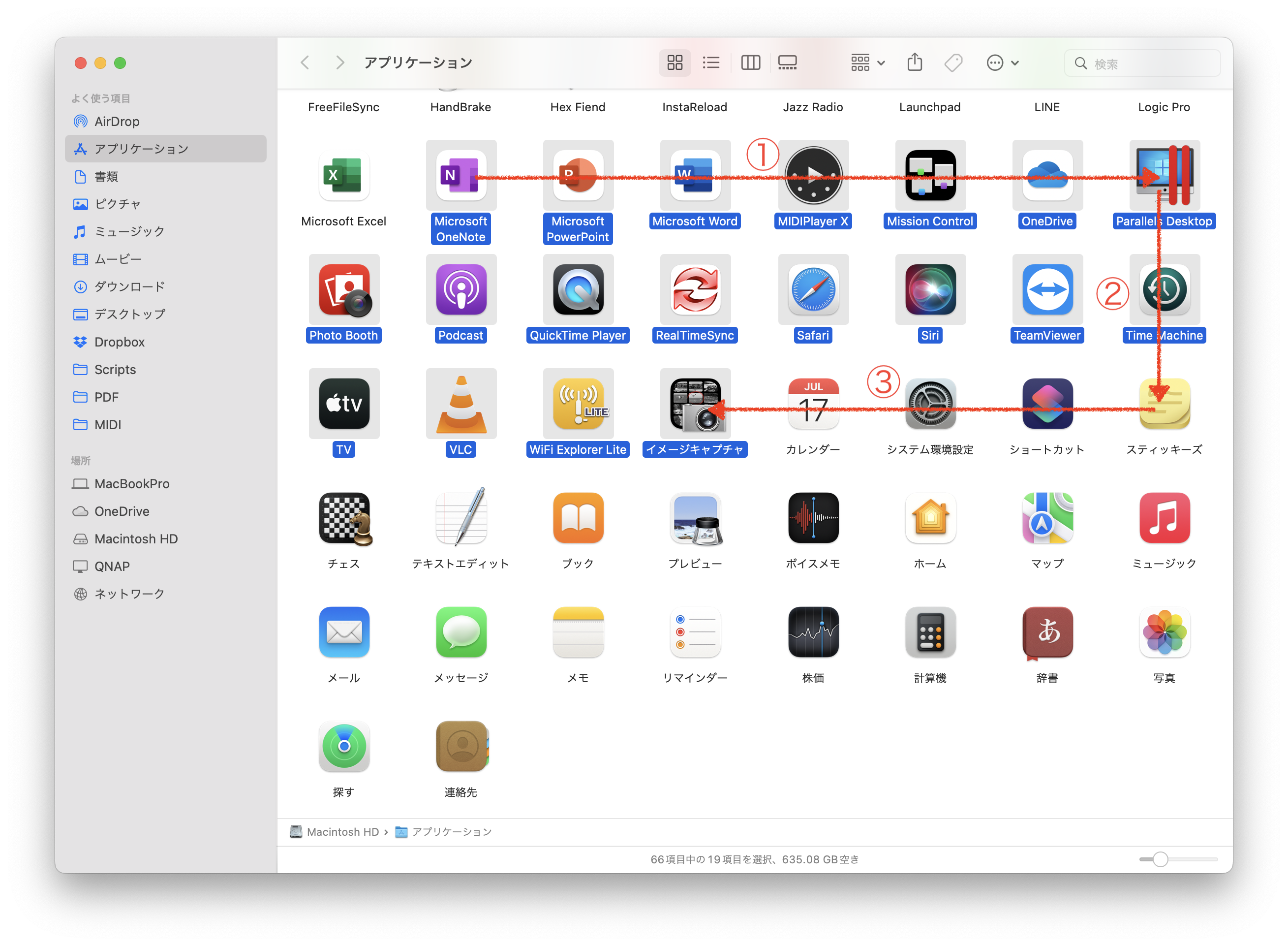 フォルダ内に複数のファイル(A〜G)があり、それらがアイコン表示かつ名前順で表示されているとします。